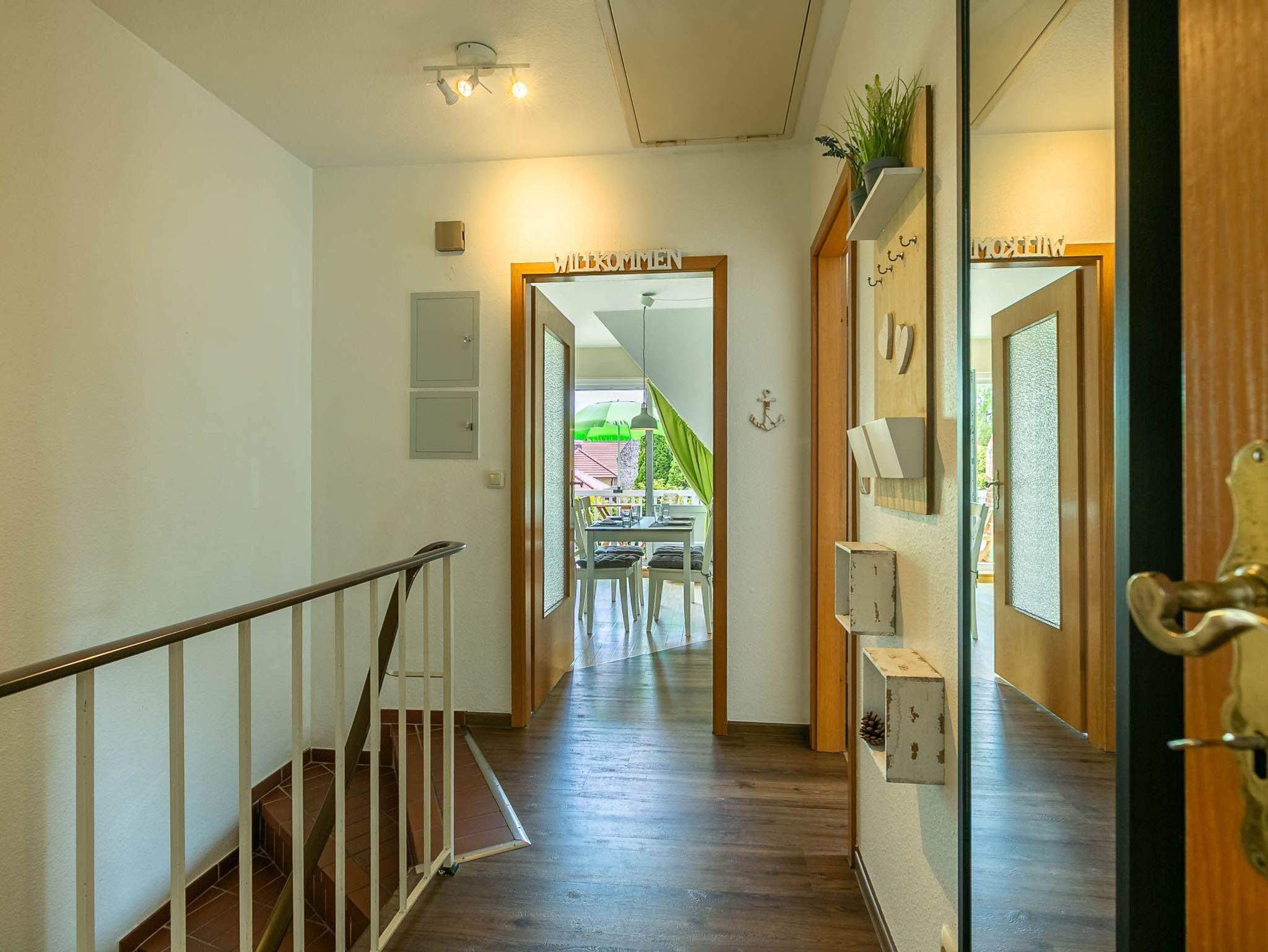 Flur mit Garderobe und Schuhablage im Eingangsbereich im Erdgeschoss.