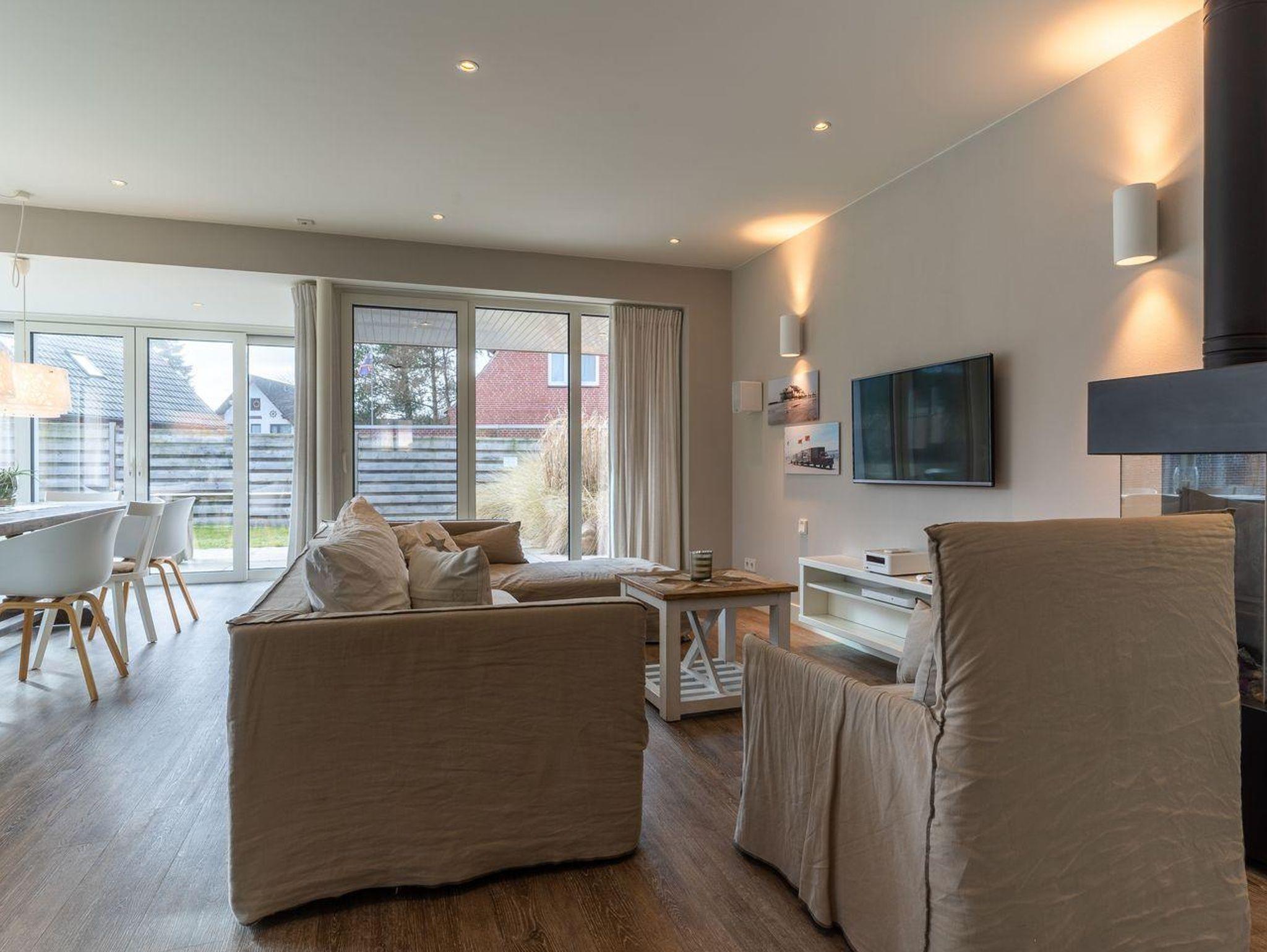 Luxuriöse Haushälfte in St. Peter-Ording mit Sauna, Kamin und geschützter Terrasse, ideal für 6 Personen.
