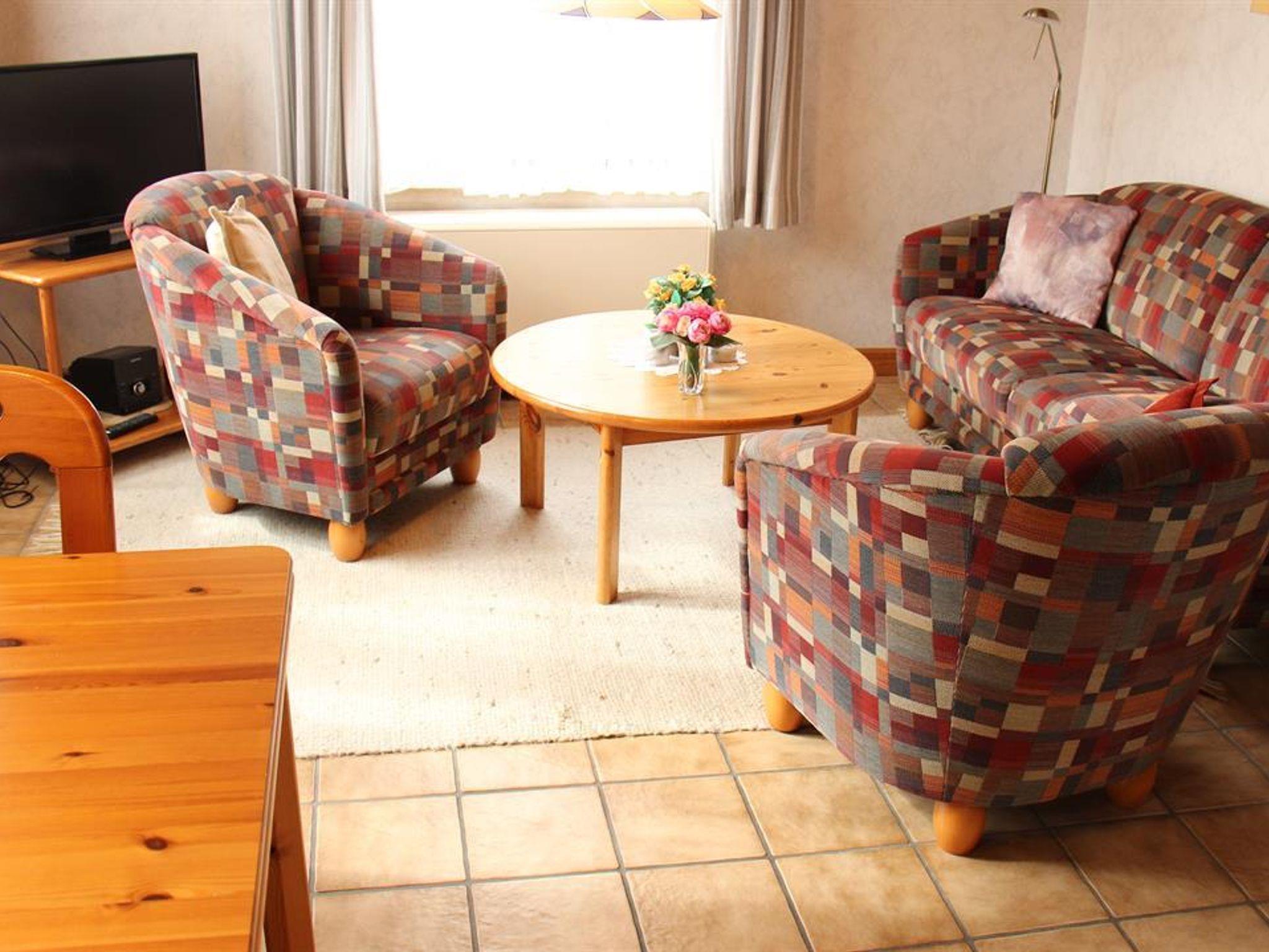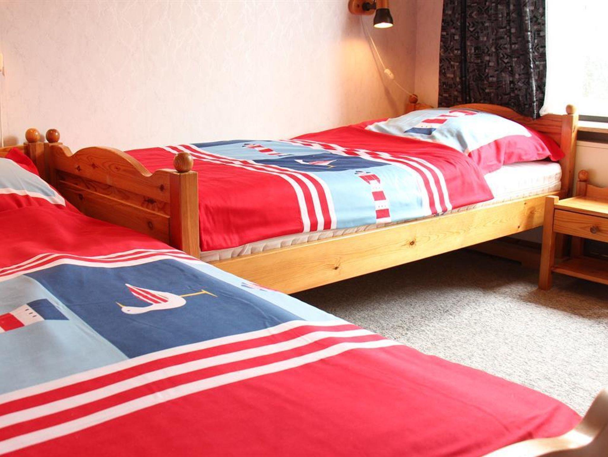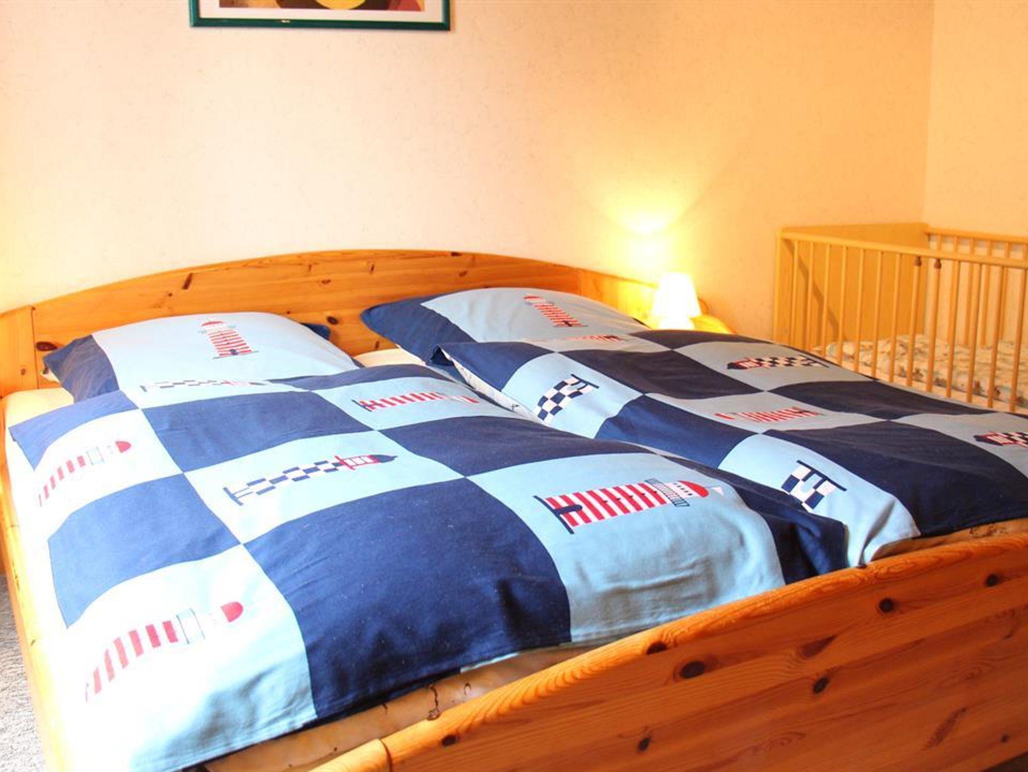 1 Wohn-Eßraum mit Küchenzeile (u.a. mit Mikrowelle), Kabel-Farb-TV, Radio (mit CD-Player). 1 Schlafraum mit Doppelbett. 1 Schlafraum mit 2 Einzelbetten. Dusche/WC. Abstellraum.Tresor. Deckenholzvertäfelung. Die Wohnung ist liebevoll im nordischen Stil eingerichtet. Bettwäsche und Handtücher müssen mitgebracht werden. Kinderhochstuhl und Kinderbett auf Wunsch nach Verfügbarkeit. Neue Designbelagböden in den Schlafzimmern.