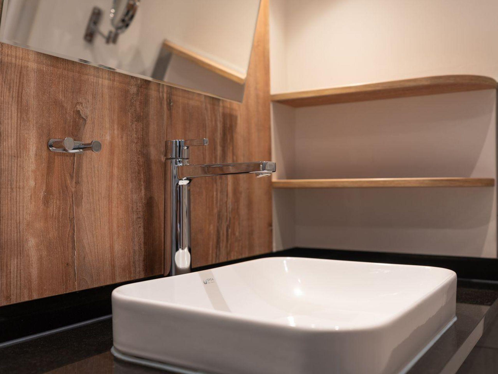 Ein modernes Sofa im Wohnbereich kann auch als Schlafcouch genutzt werden (160x200cm). An den Wohnbereich schließen sich ein Duschbad, sowie ein Schlafzimmer mit einem Boxspringbett (180x200cm) an. Vom Wohnzimmer gelangen Sie auf eine großzügige Terrasse. Hier können Sie sich entspannen und die Seele baumeln lassen.