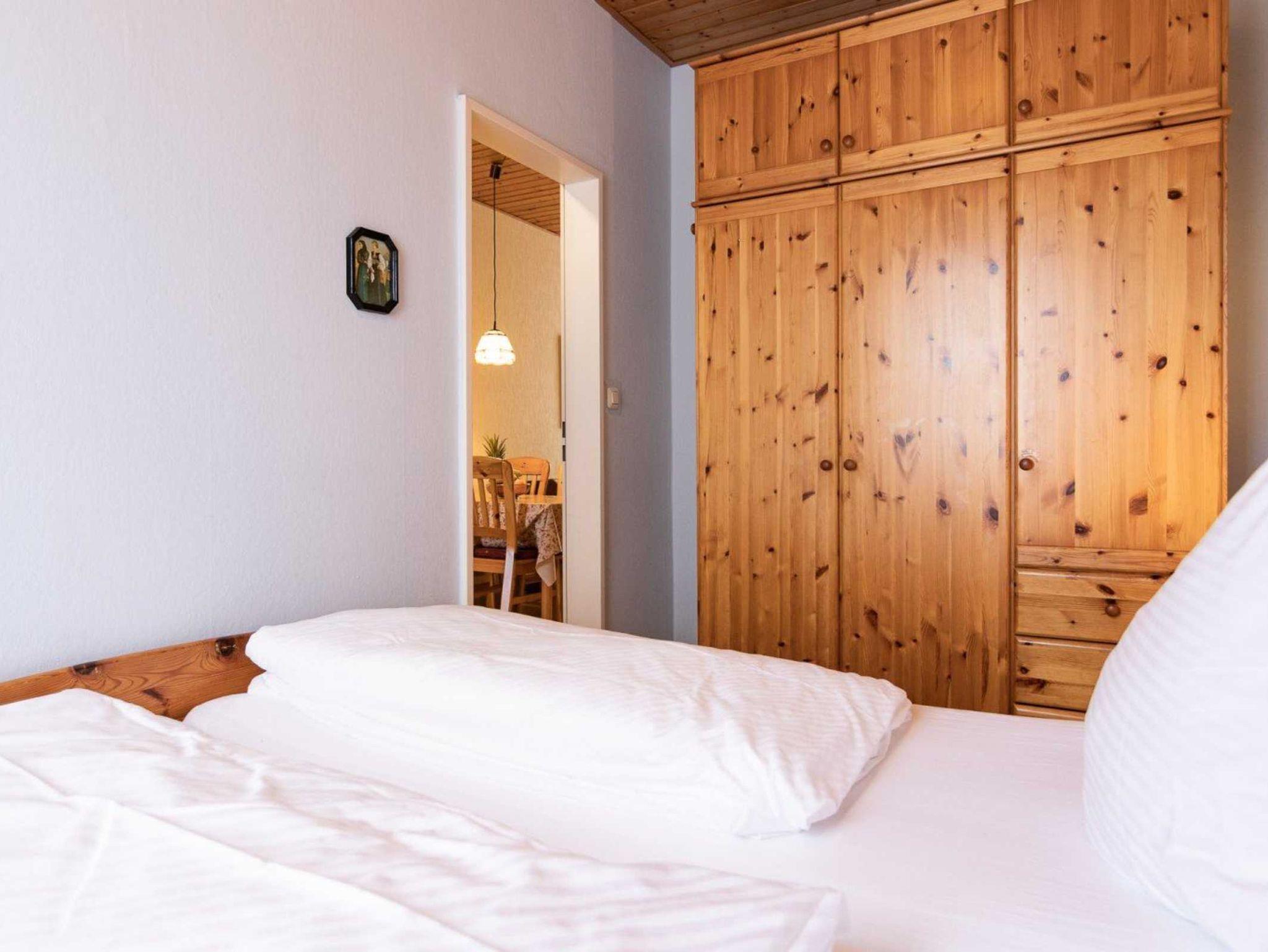Schlafzimmer mit Doppelbett (2x 90x200cm) und Kleiderschrank.