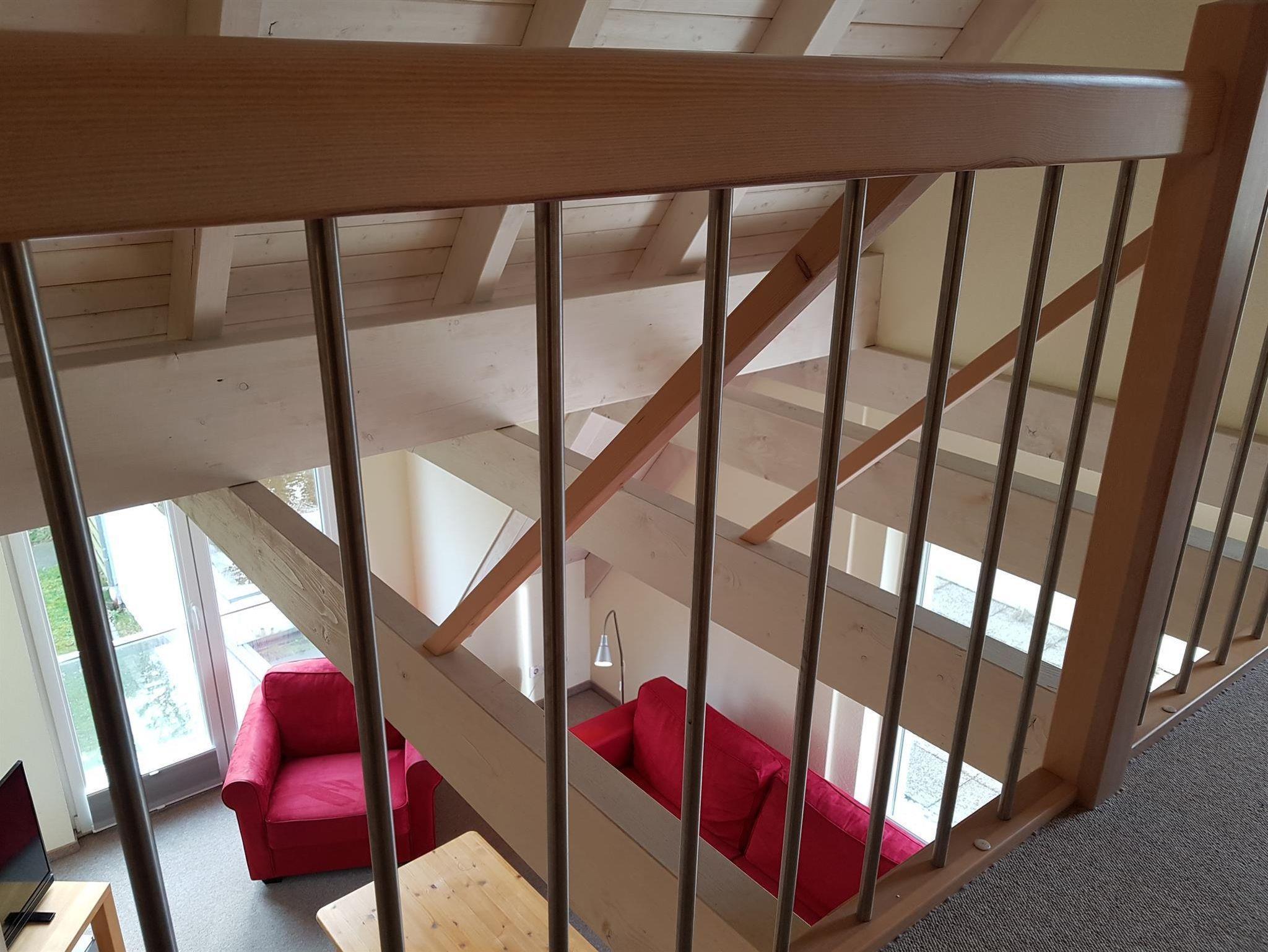 Die Wohnungen selbst bestehen aus einem Wohnzimmer mit einer Küchenzeile, die u. a. mit Kaffemaschine, Toaster, Wasserkocher, Spülmaschine, Backofen, Mikrowelle und einem Cerankochfeld ausgestattet ist. Nebenan befinden sich das Duschbad und ein Schlafzimmer. Über eine Treppe gelangen Sie aus dem Wohnzimmer auf eine Galerie mit einem Doppelbett.