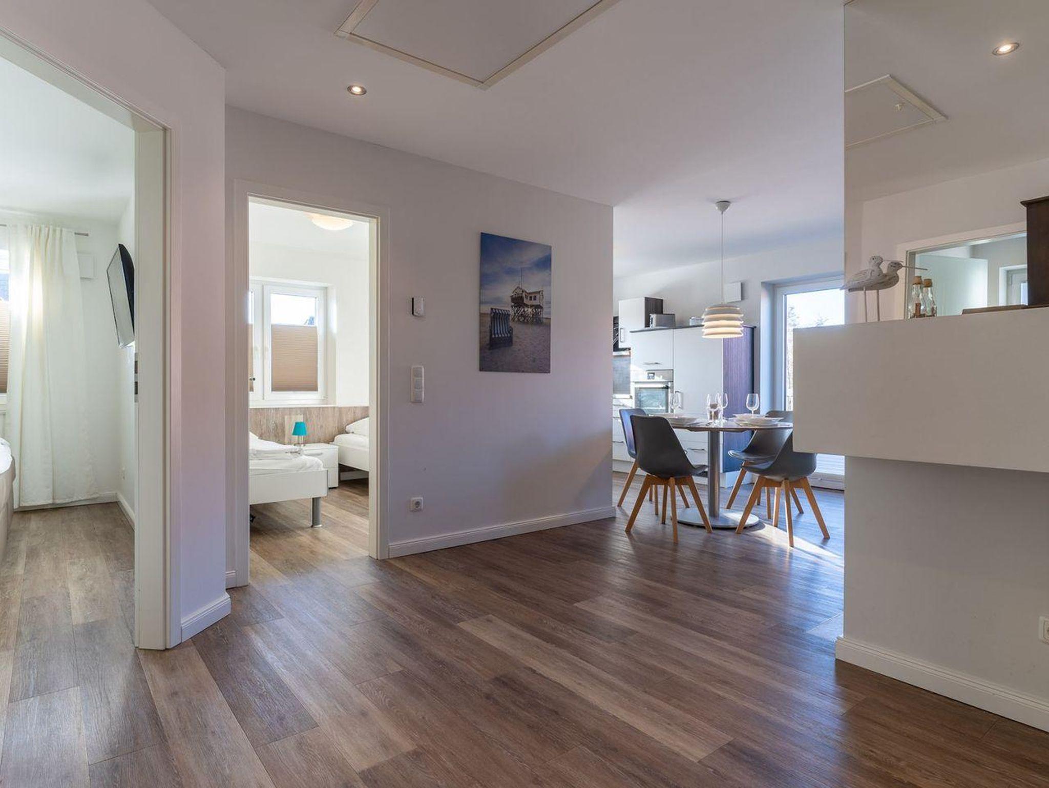 Modernes Appartement in St. Peter-Ording mit großem Balkon und direktem Zugang zum 12 km langen Strand.