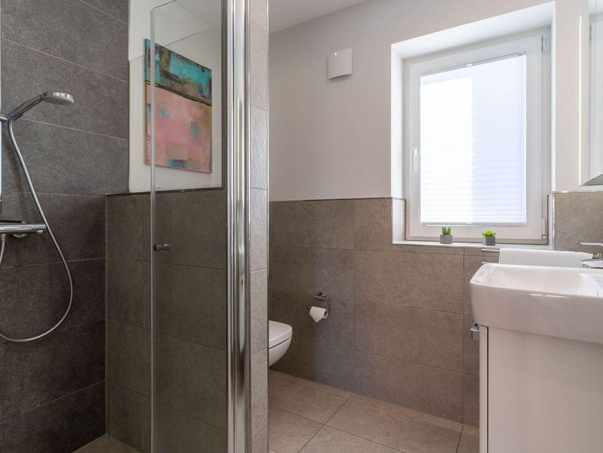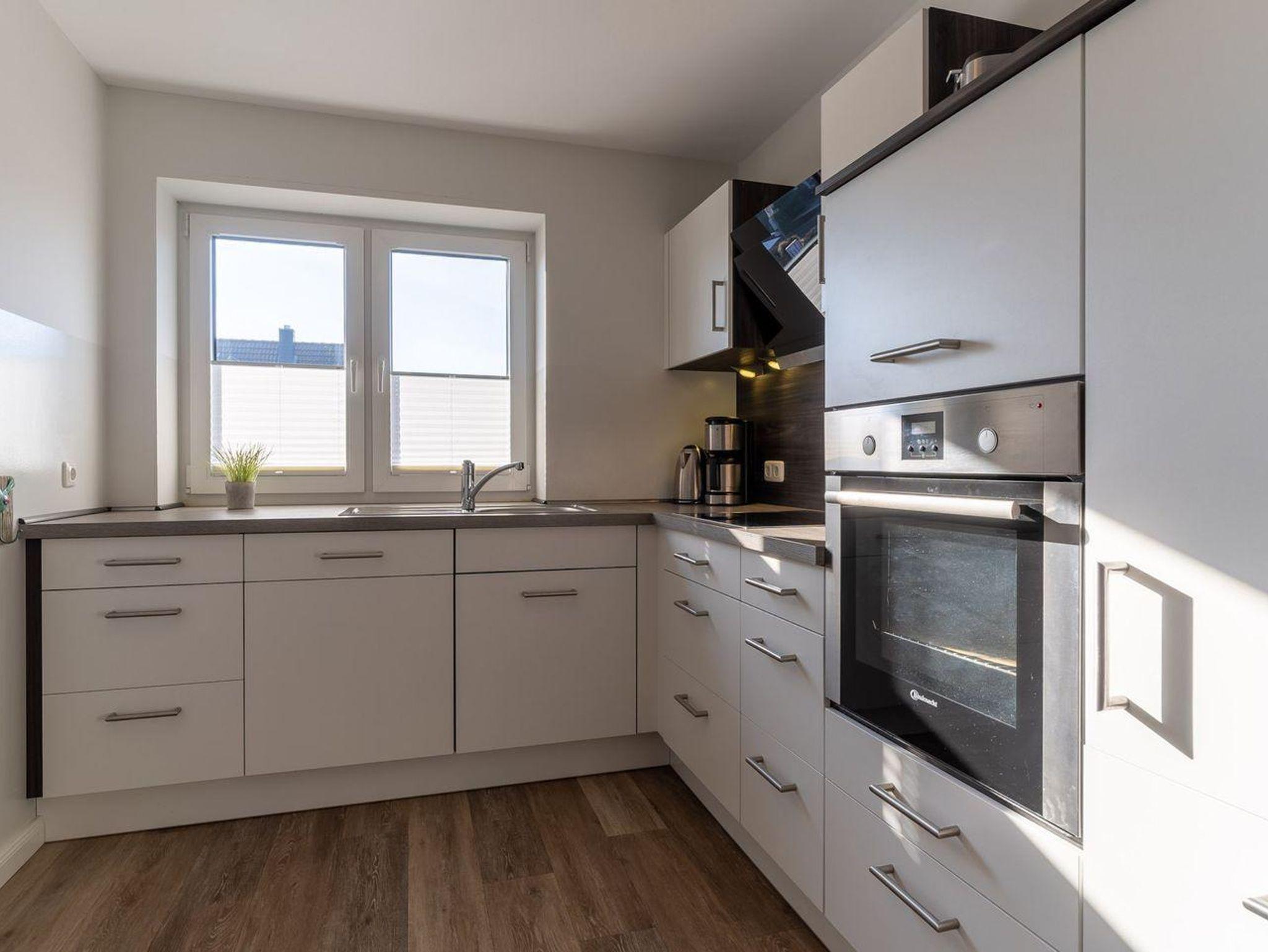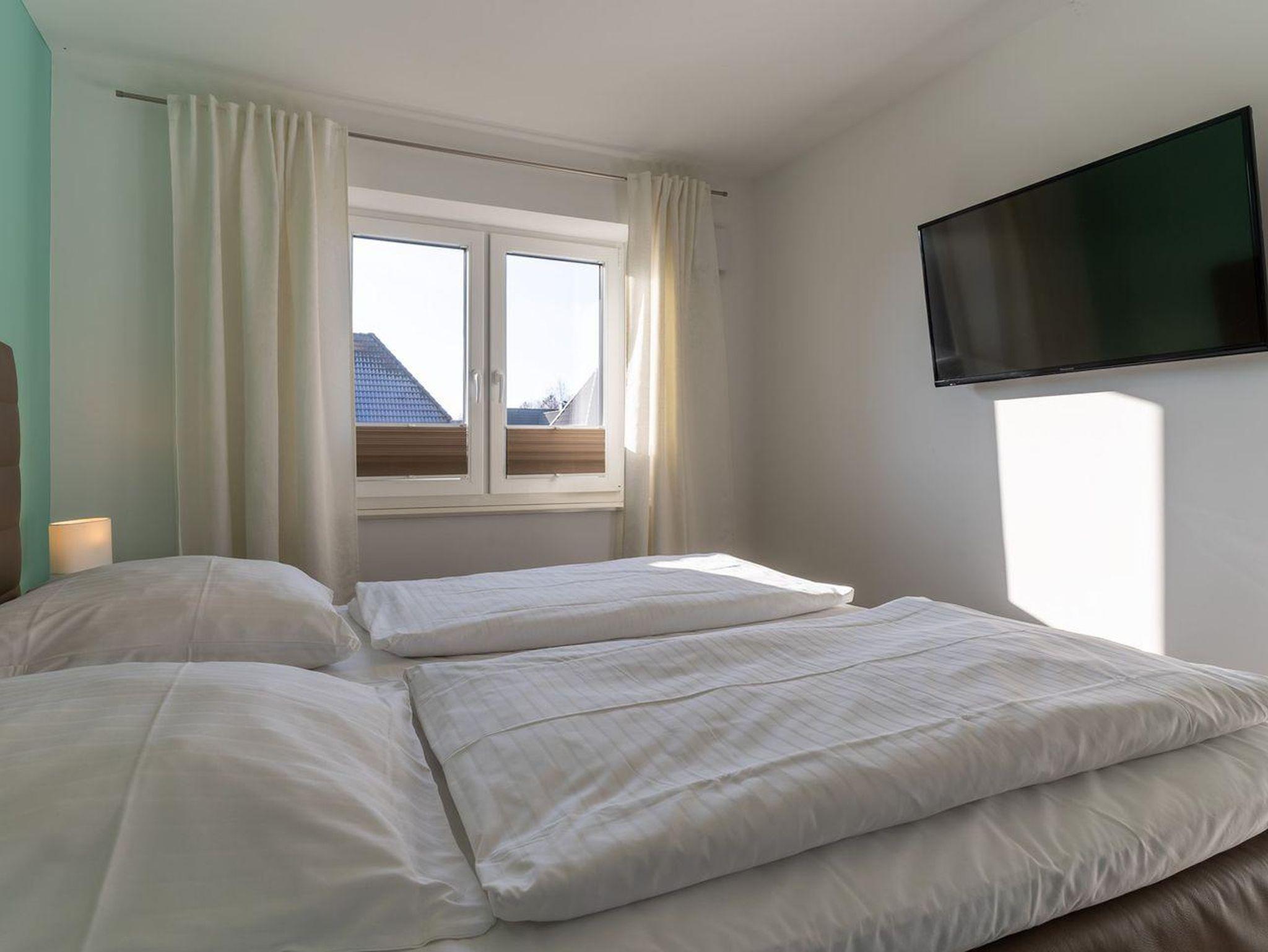 Das großzügige 70m² Appartement ist mit sehr exclusiven Möbeln eingerichtet. Ein gemütliches Wohnzimmer mit Ecksofa und Kamin laden zum Chillen ein. Die offene Wohnküche ist mit hochwertigen Geräten voll ausgestattet. Das Duschbad ist großzügig gestaltet und bietet genügend Platz für Ihre Utensilien. Außerdem ist noch ein weiteres Gäste WC vorhanden. Das Schlafzimmer mit 180er Boxspringbett und Flatscreen TV sorgen für ruhevolle Erholung. Ein weiteres Doppelzimmer mit 2 Einzelbetten bietet Platz für 2 Personen. Die Wohnung ist mit sehr viel Liebe zum Detail ausgestattet und traumhaft lichtdurchflutet. Sie erreichen das Appartement im 1 OG über einen Treppenaufgang am Haus. Kostenlose W-LAN, Waschmaschinen- und Trocknernutzung sind möglich. Zwei PKW Stellplätze sind am Haus vorhanden.