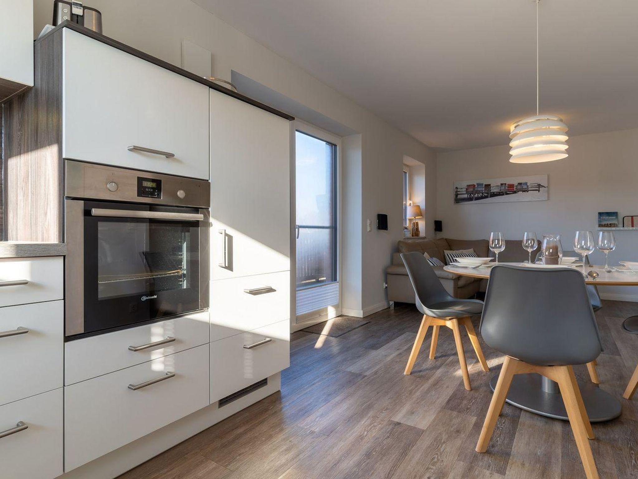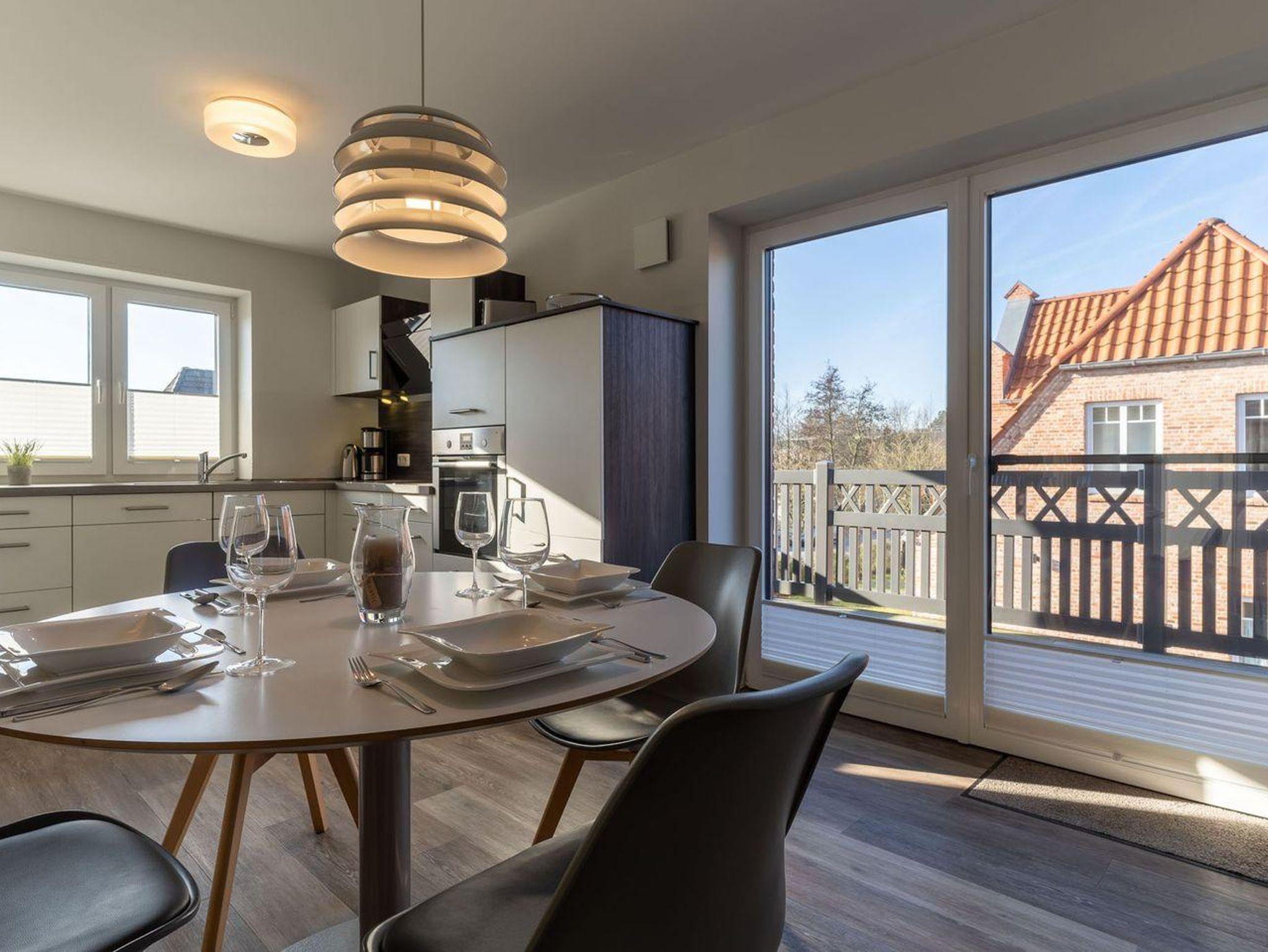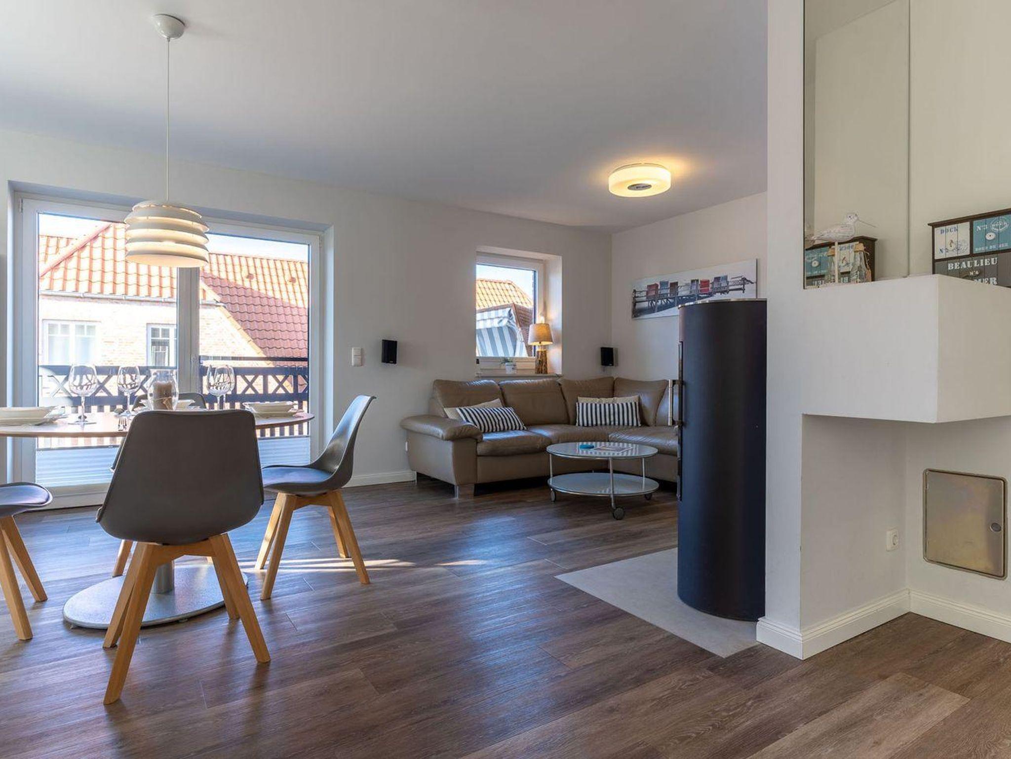 Das stylische Appartement bietet großzügigen Platz für 4 Personen. Die Wohnung hat einen großen Balkon inklusive edlen Balkonmöbeln und Strandkorb.