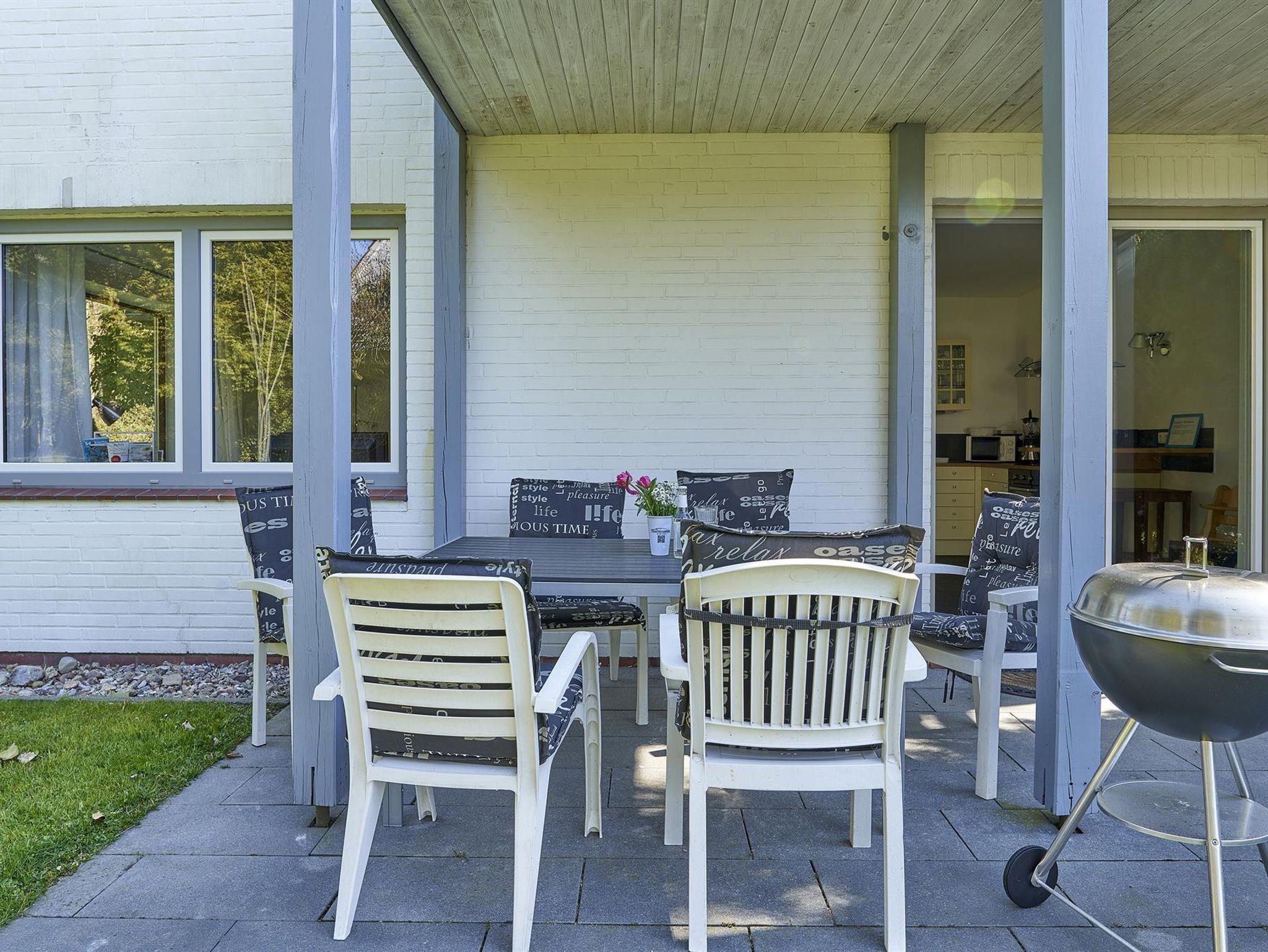 große teilweise überdachte Süd-Terrasse, Möbel mit Sitzauflagen und Liege erwarten Sie hier.