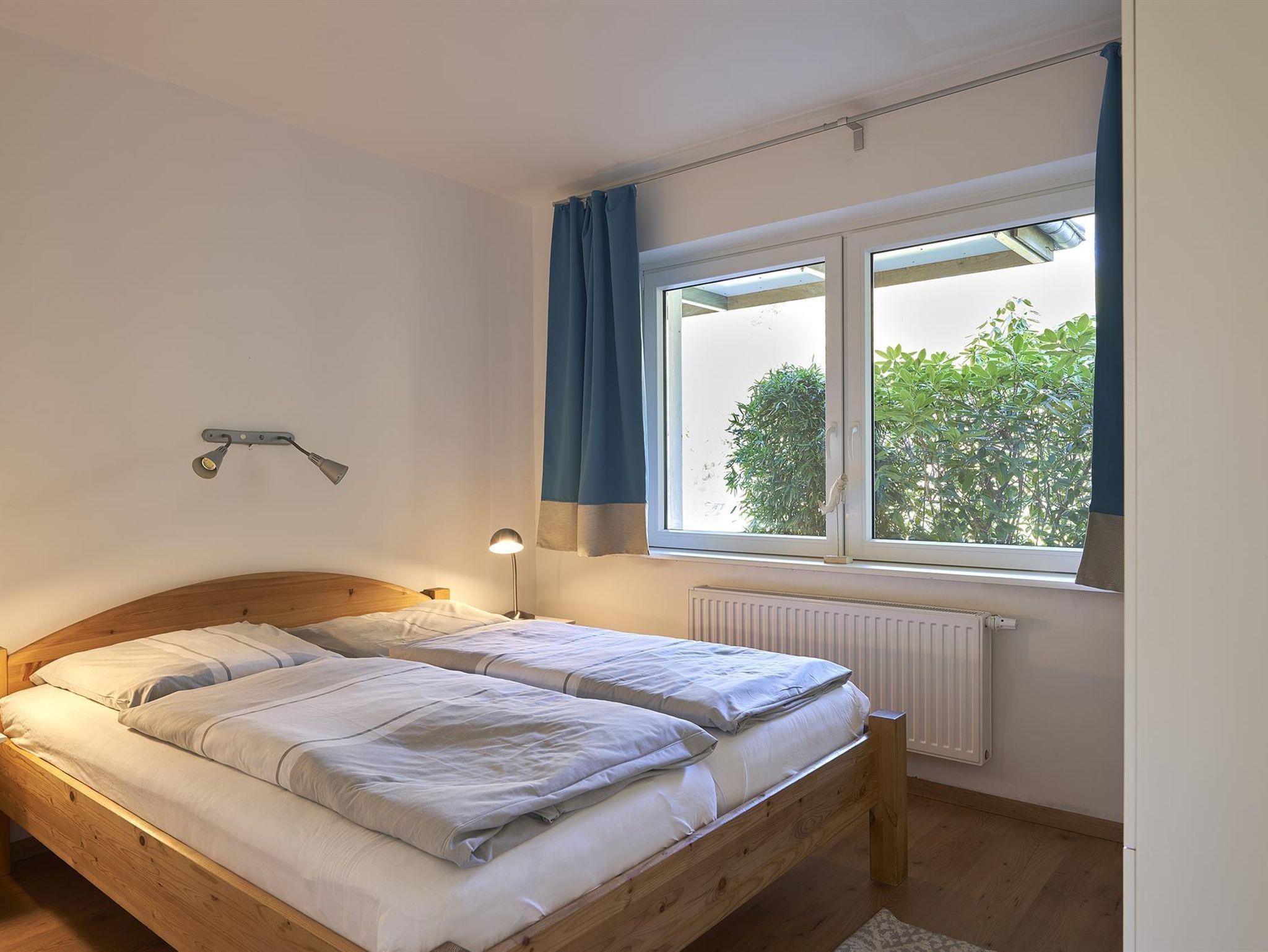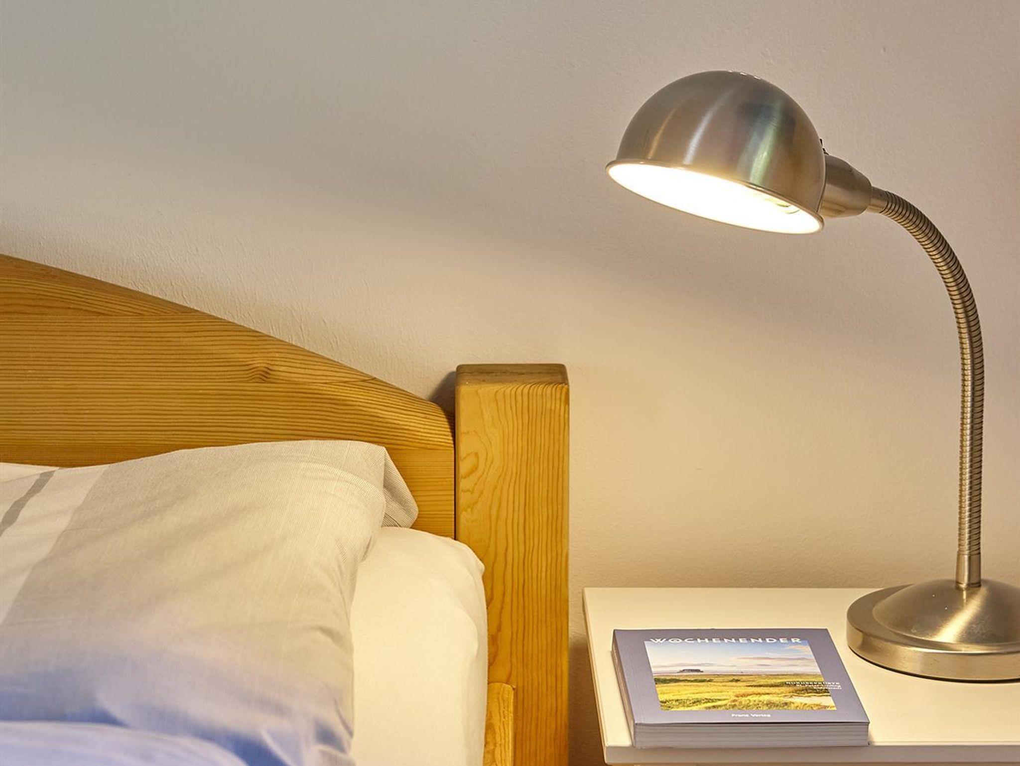 2 gemütliche Schlafzimmer mit Doppelbetten und extra Leselampen,