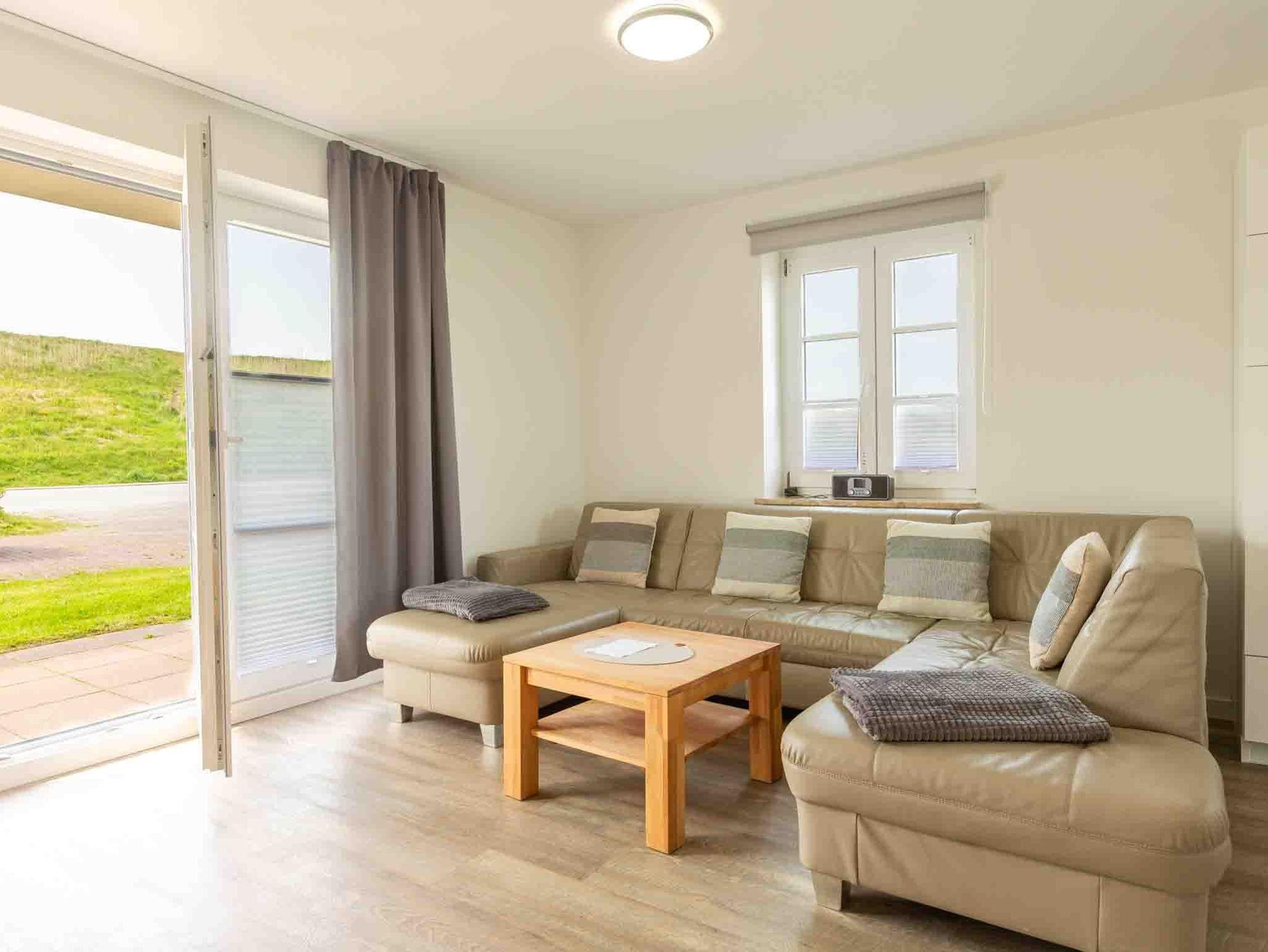 Moderne 3-Zimmer-Ferienwohnung am Deich in St. Peter-Ording mit zwei Terrassen und Meerblick.