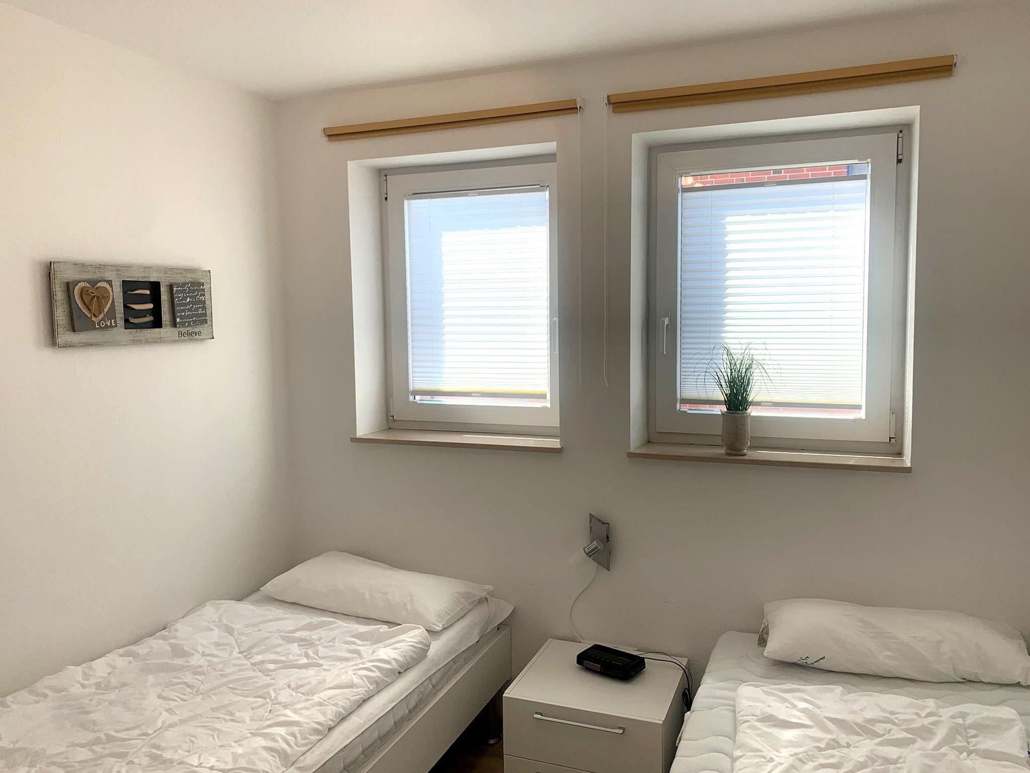Schlafzimmer 2: 2 Einzelbetten, Nachttisch, Kleiderschrank, Herrendienerstuhl