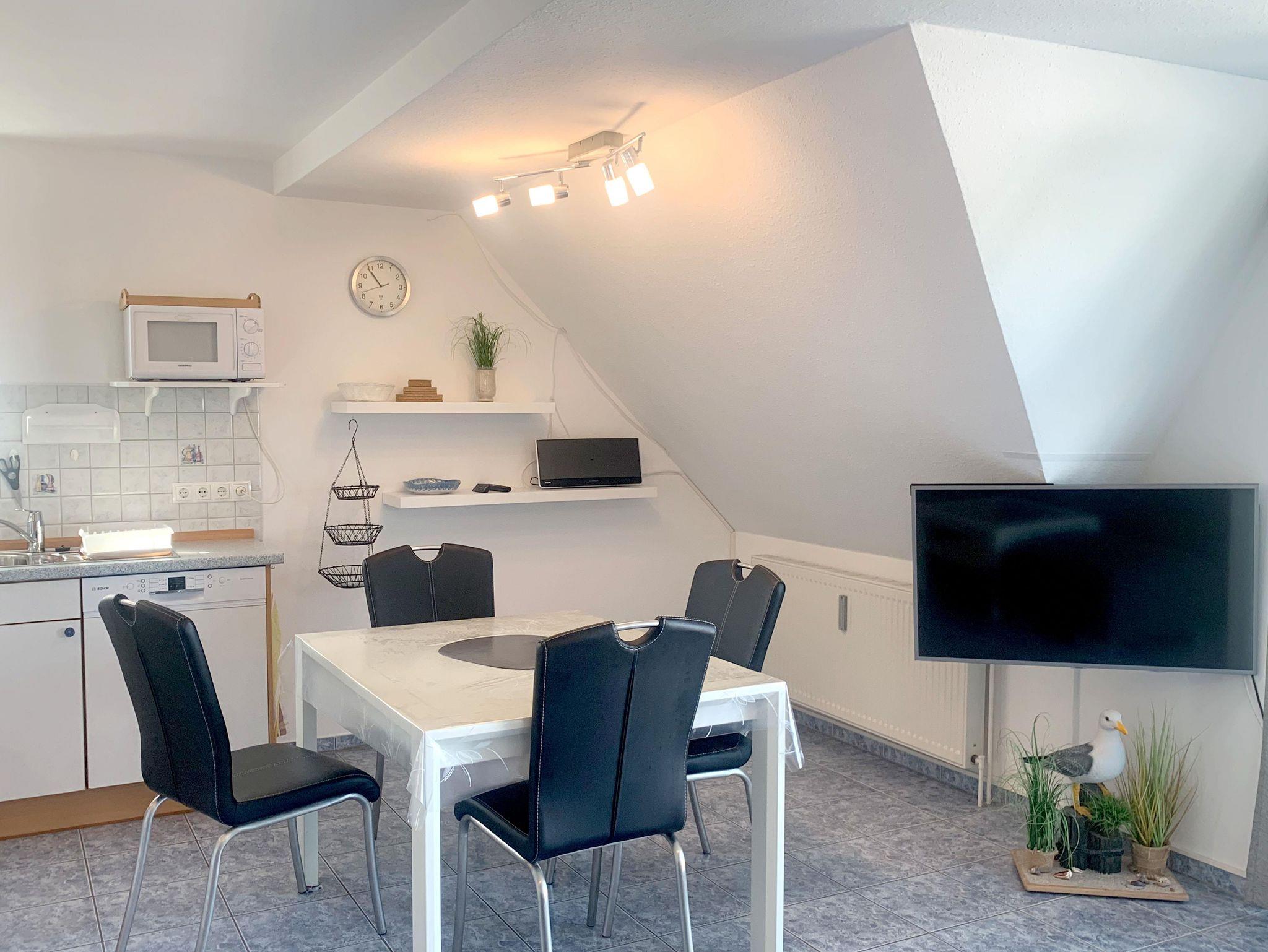 Schöne Nichtraucher-Ferien-Oase im 1. OG. In der im November 2014 frisch renovierten 3-Zimmer-Ferienwohnung Hus an de Diek Nr. 04 für bis zu 4 Personen können Sie sich auch als Allergiker rundum wohl fühlen. Der Balkon in Westlage verspricht schöne Sonnenuntergänge. Das Wohnzimmer überzeugt mit einer freundlichen Einrichtung und einer gemütlichen Polsterecke. Die Küche ist mit einem Cerankochfeld (4/5 Platten), Backofen und Spülmaschine ausgestattet. Erholsamen Schlaf bekommen Sie in 2 getrennten Schlafzimmern, eines mit einem Doppelbett, das andere mit 2 Einzelbetten.