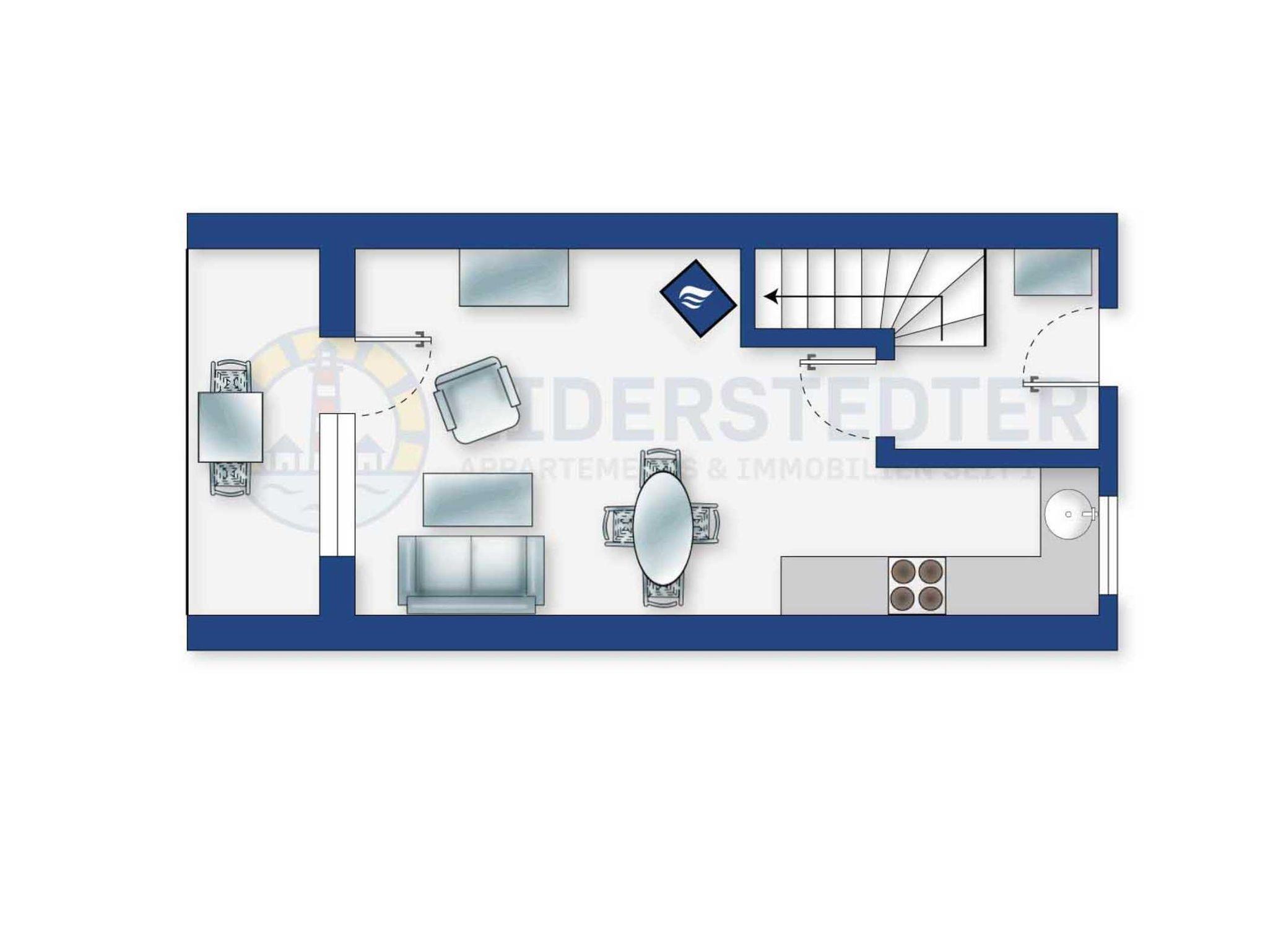 Gemütlicher Mittelhausteil mit Kaminofen und Terrasse in zentraler Lage von St. Peter-Ording.