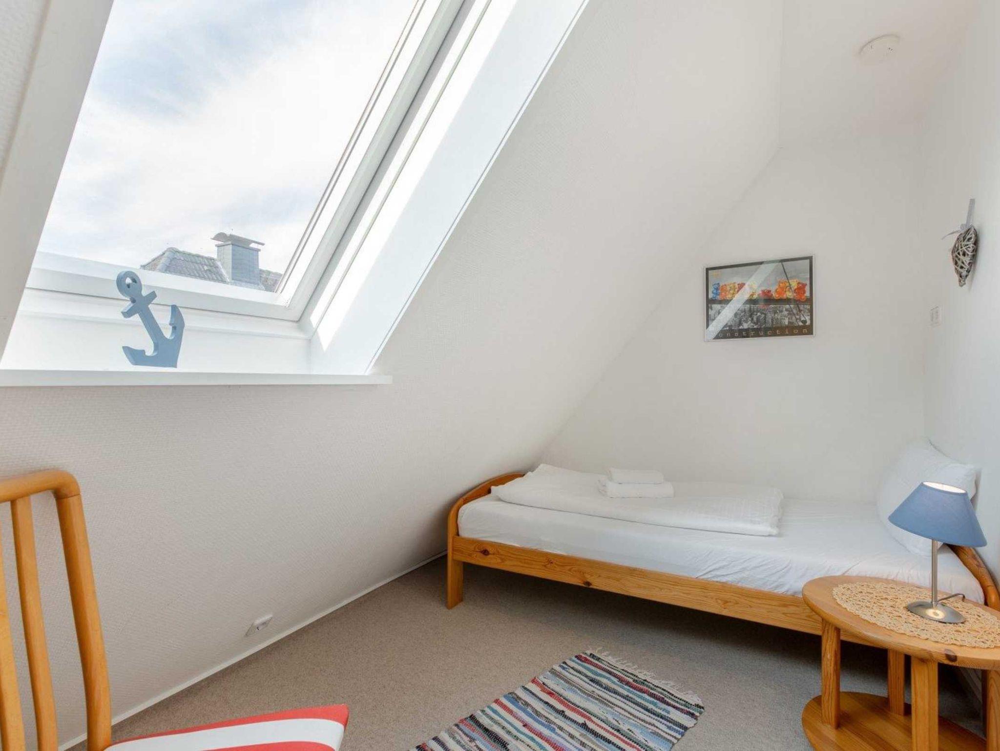 2. Schlafzimmer mit Einzelbett (90x190cm), Kommode und Stuhl.
