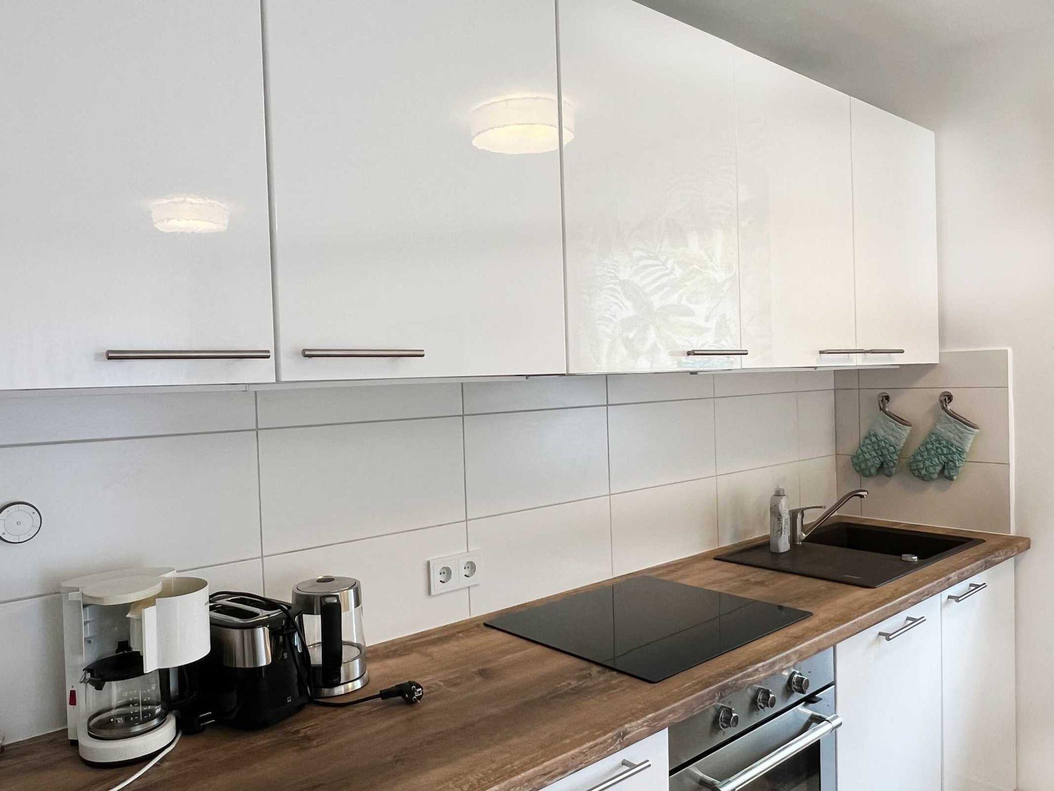 Die offene Küchenzeile ist mit einem Dreier-Induktionskochfeld ausgestattet, perfekt für die Zubereitung Ihrer Lieblingsgerichte. Das hell geflieste Bad sorgt für eine angenehme Atmosphäre.