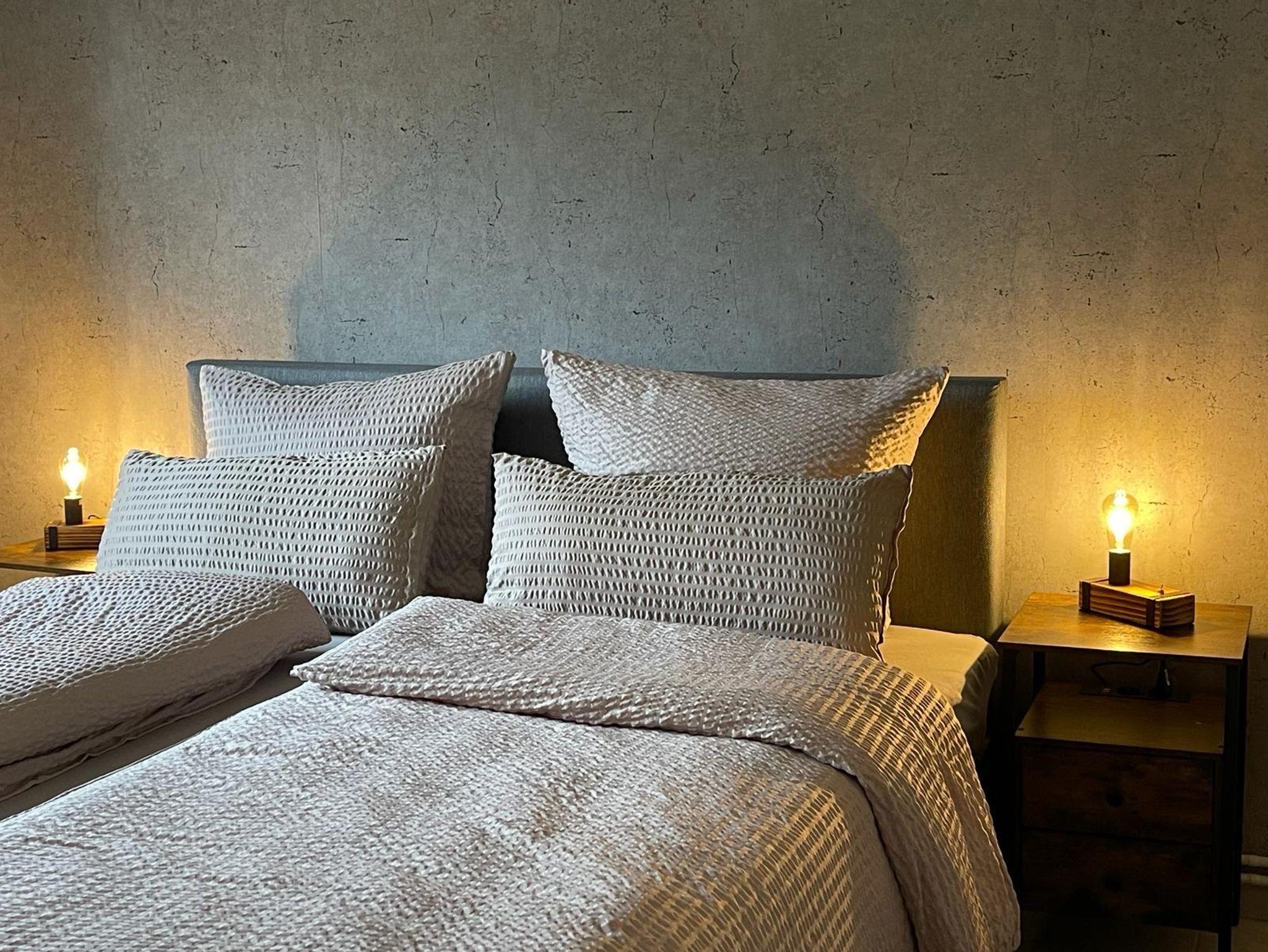 Das Bett ist ein 1,80m x2,00m Boxspringbett mit 2 einem Topper, sodass der Härtegrad selbstständig verändert werden kann.