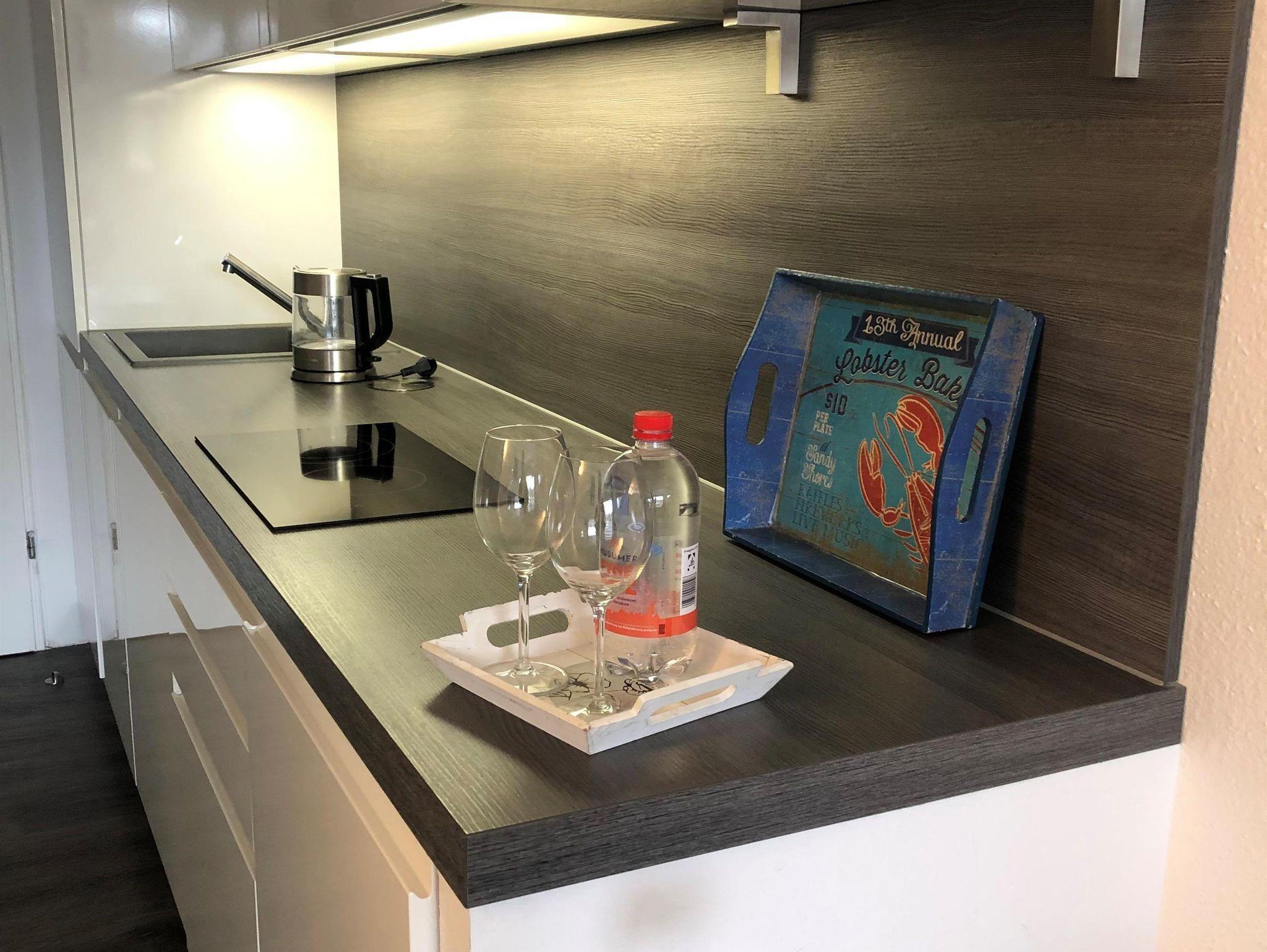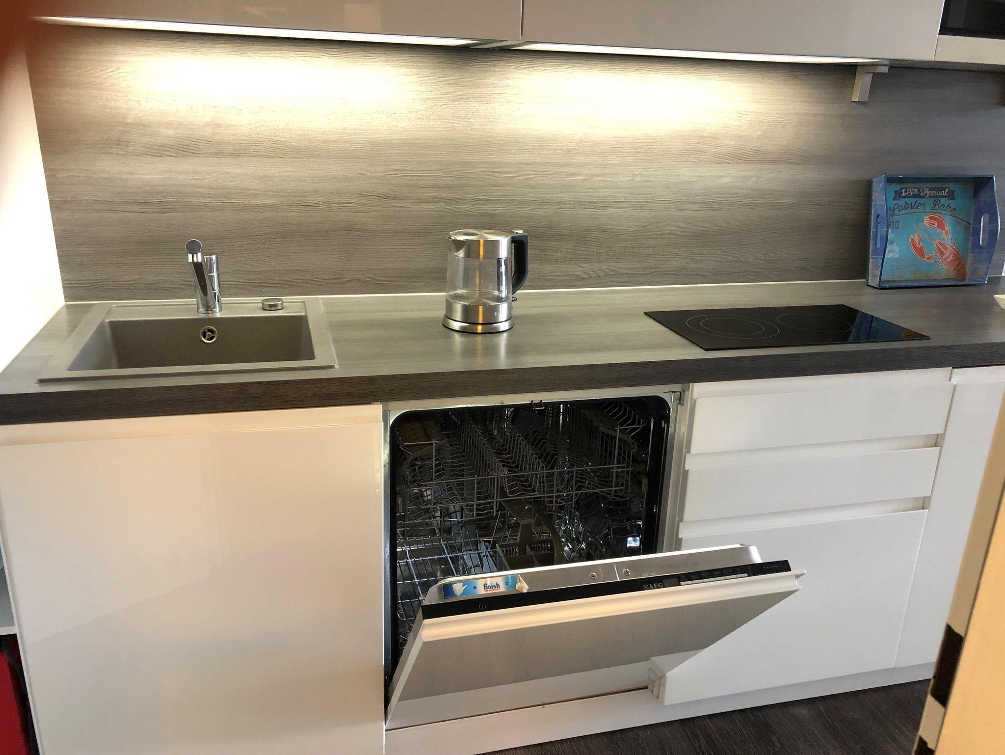Unser Appartement ist mit einem hochwertigen Doppelbett, einer komfortablen Küche mit Geschirrspüler, einem Sitz- und Essbereich, sowie einem Duschbad ausgestattet.