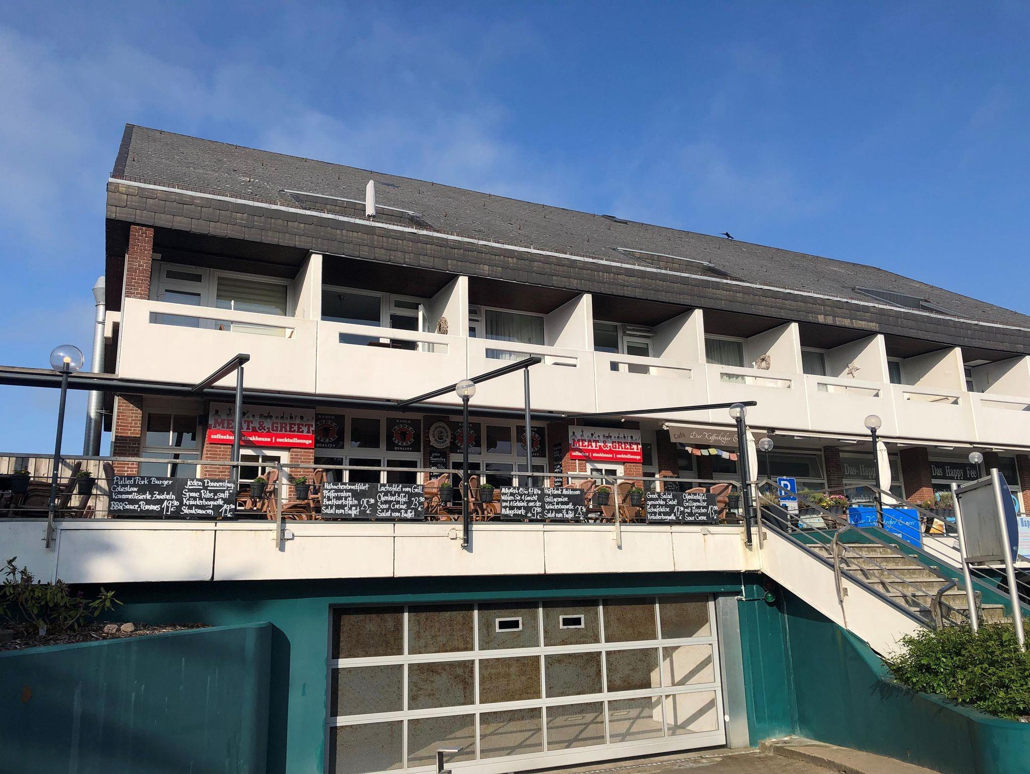 mittendrin in Sankt Peter-Ording, mit überdachtem Balkon und Parkplatz in der Tiefgarage.