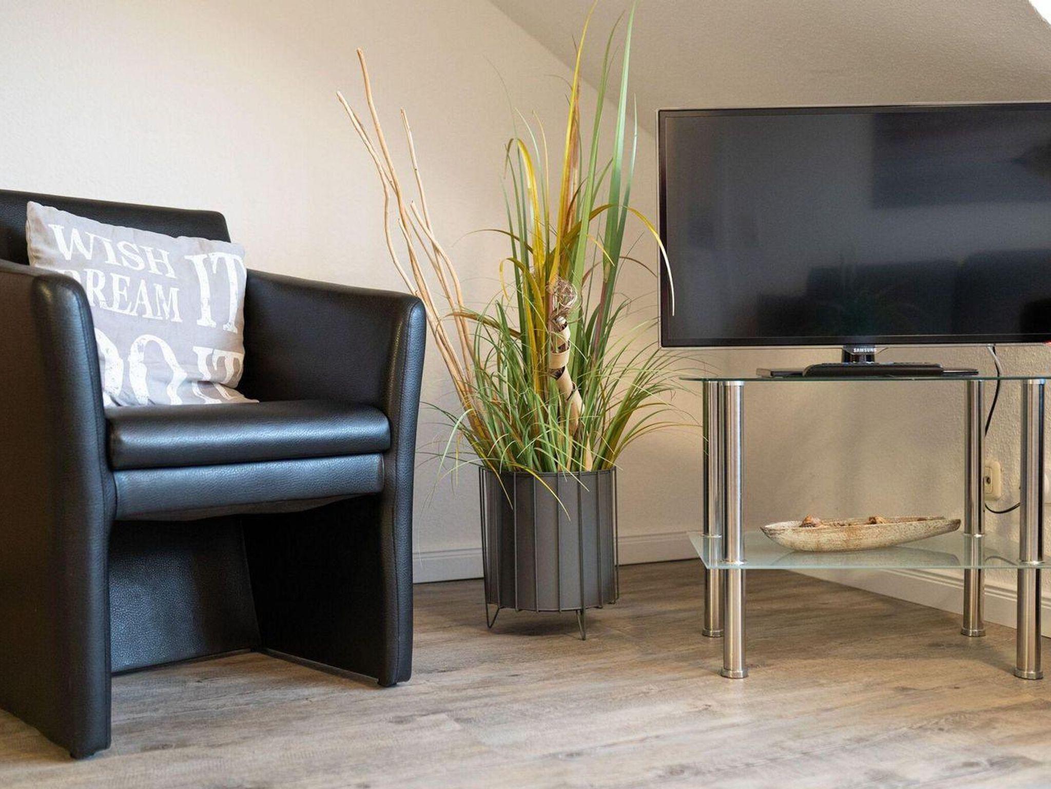 Der Wohnbereich des Appartements besteht aus einer bequemen Couch mit Couchtisch und 2 Sesseln. Auch ein Esstisch mit 4 Stühlen steht für Sie bereit. Die Küchenzeile ist ausgestattet mit einem Herd mit Ceranfeld und Backofen, Geschirrspüler und Geschirr - dazu Kaffeemaschine, Kochtöpfe, Kühlschrank, Toaster und einem Wasserkocher. Das Schlafzimmer mit 2 Nachttischen und einem Kleiderschrank verfügt über ein bequemes Boxspringbett (1,80 x 2,00 m). Eine weitere Schlafmöglichkeit bietet Ihnen eine Schlafcouch im Wohnbereich. Das Badezimmer ist mit Dusche, Waschbecken und WC ausgestattet. Zur Unterhaltung dient ein Sat-TV Flachbildschirm inkl. Radio-Empfang sowie WLAN (inklusive).