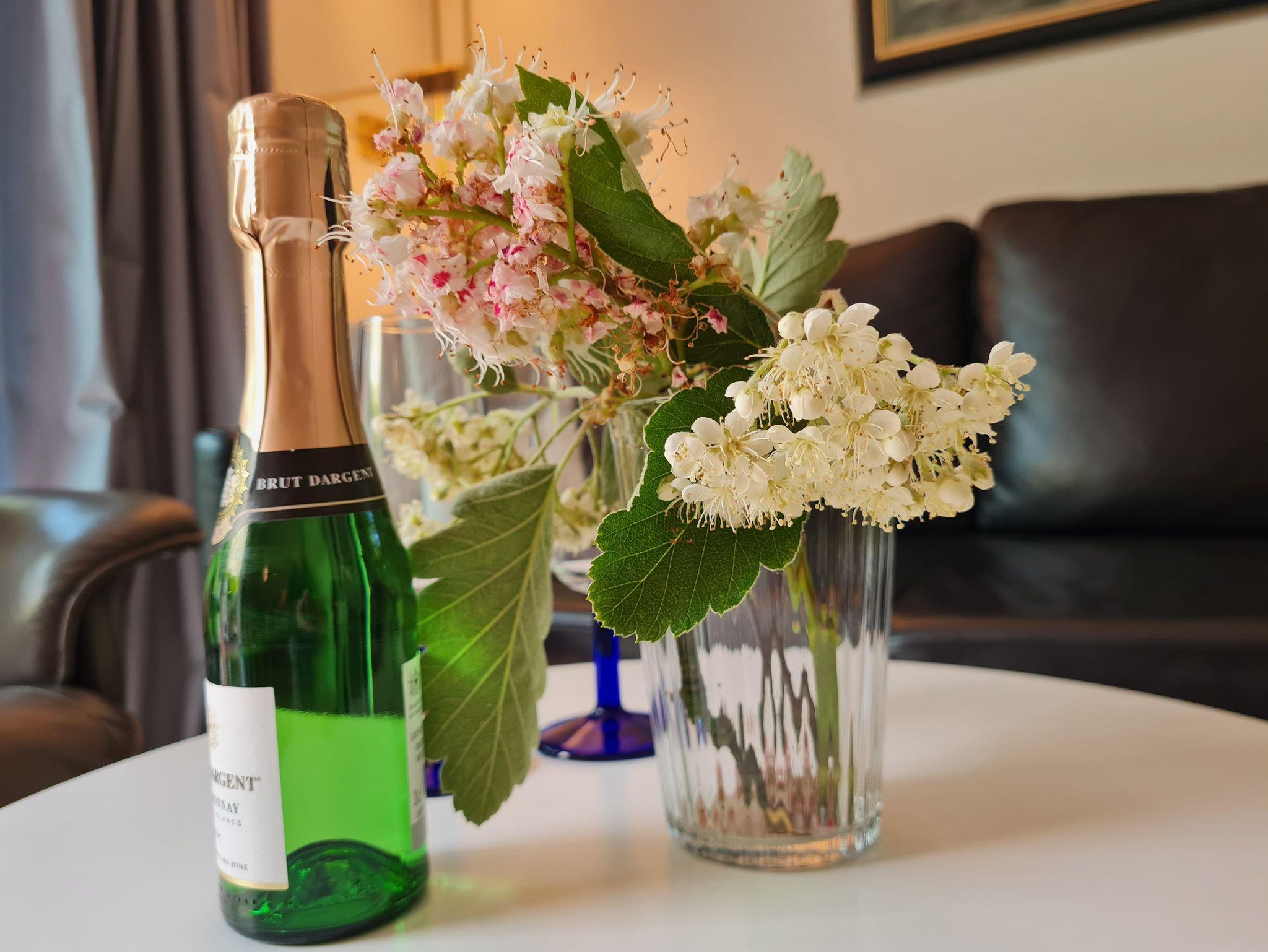 Die Ferienwohnung bietet ein großzügiges Wohnzimmer mit ausziehbarer Doppelcouch, Flachbild-TV, Radio und einem gemütlichen Kamin. Vom Wohnzimmer gelangen Sie direkt auf die möblierte Terrasse mit Strandkorb und Gartenmöbeln, die zum Entspannen einlädt.