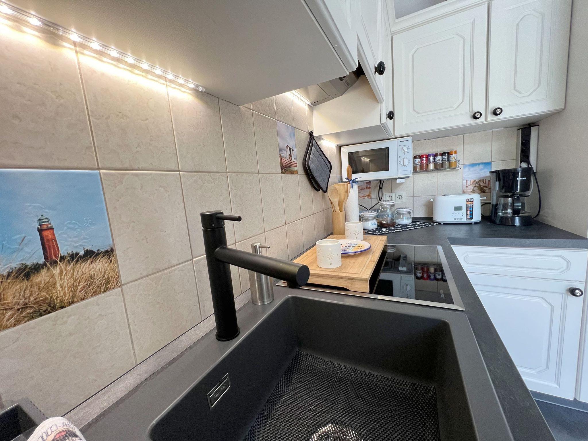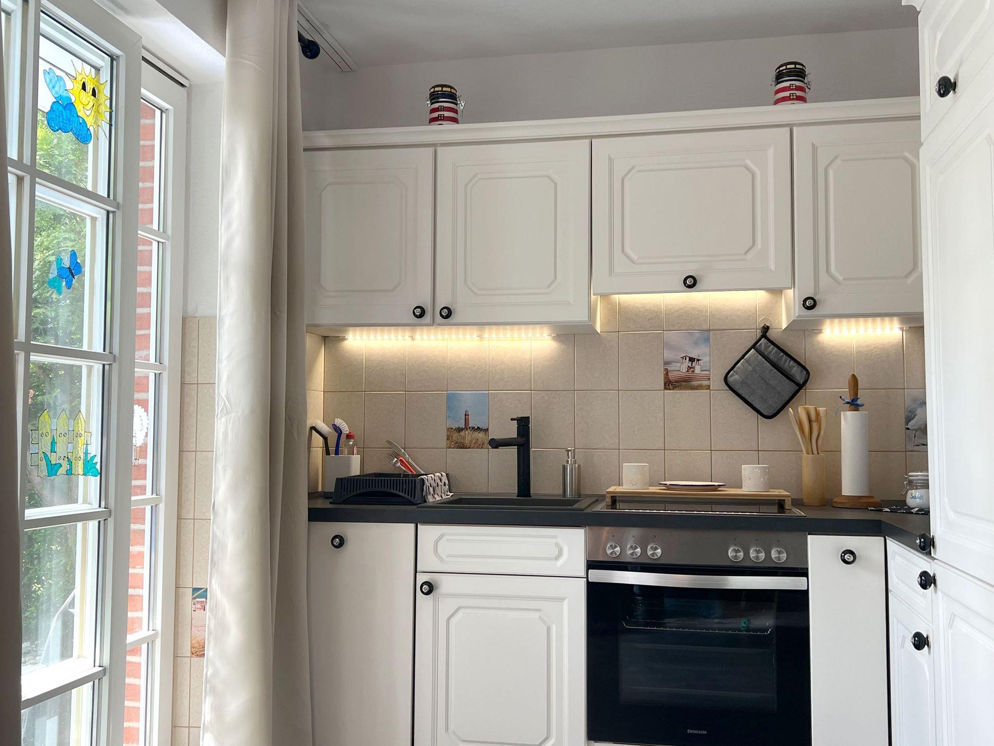 Diese sehr ruhig gelegene, geschmackvoll eingerichtete Wohnung eignet sich wunderbar für Ihren Urlaub mit 2-3 Personen und einem Hund. Das kleine Schlafzimmer verfügt über zwei Einzelbetten und einen kleinen Kleiderschrank neben dem Wohnzimmerschrank. Machen Sie es sich in einer Loungegruppe auf der Terrasse in südlicher Ausrichtung gemütlich und geniessen Sie die gute Nordseeluft. Sie möchten im Freien essen, auch kein Problem, ein Gartentisch mit 4 Stühlen steht auch zur Verfügung. Genießen Sie die tolle Lage im Ortsteil Dorf. Binnen weniger Gehminuten erreichen Sie das Zentrum im heimeligen Dorf mit seinen Cafes, Restaurants, Galerien, kleinen Läden, Bäcker und einem Frische-Edeka Markt. Ein PKW-Stellplatz befindet sich auf dem Grundstück, Nr. 14-08. Es ist nur ein Haustier gestattet, welches kostenpflichtig angemeldet werden muss.
