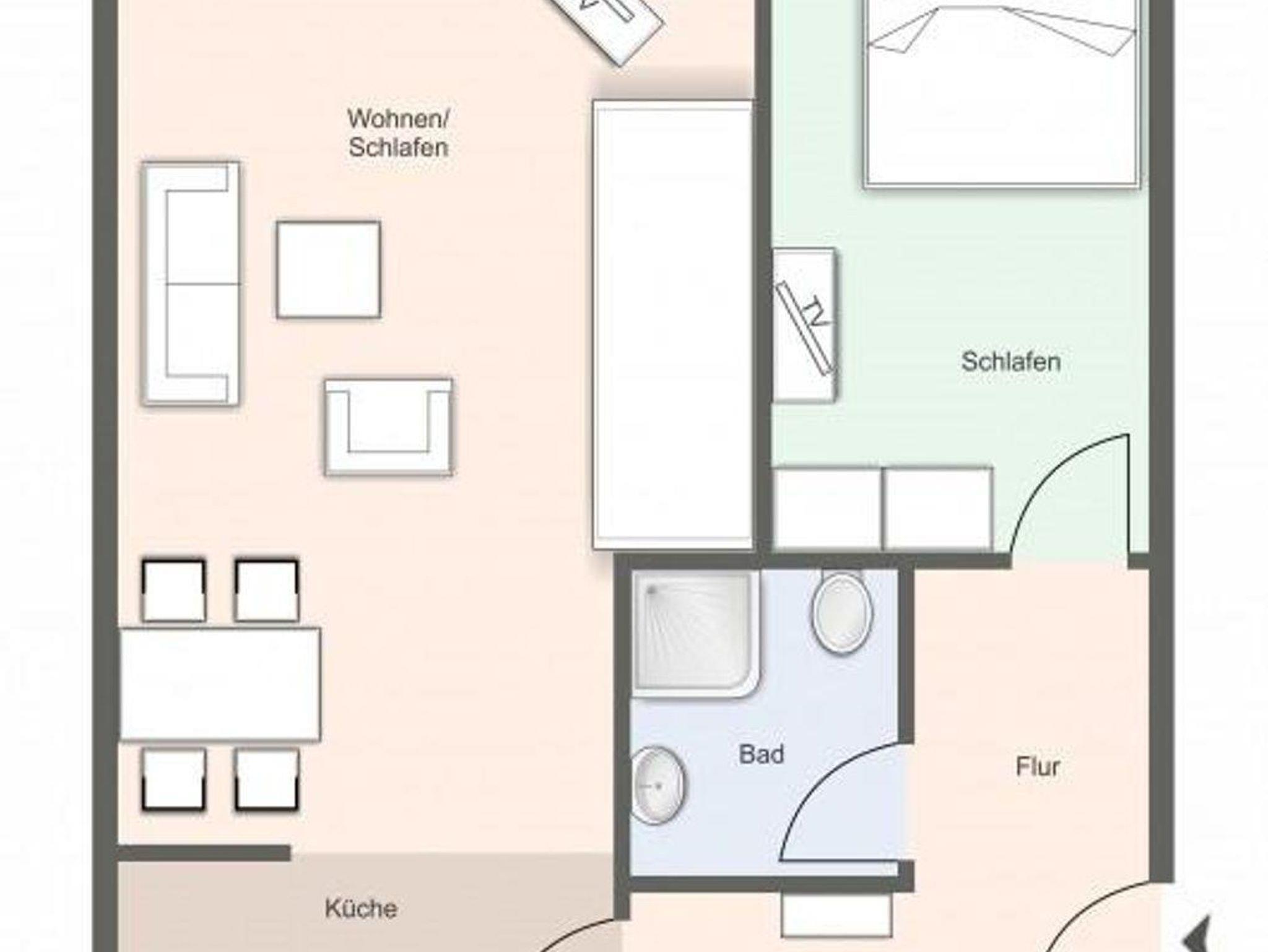Die Ferienwohnung mit einer Grundfläche von 49 qm bietet Platz für bis zu 4 Personen.