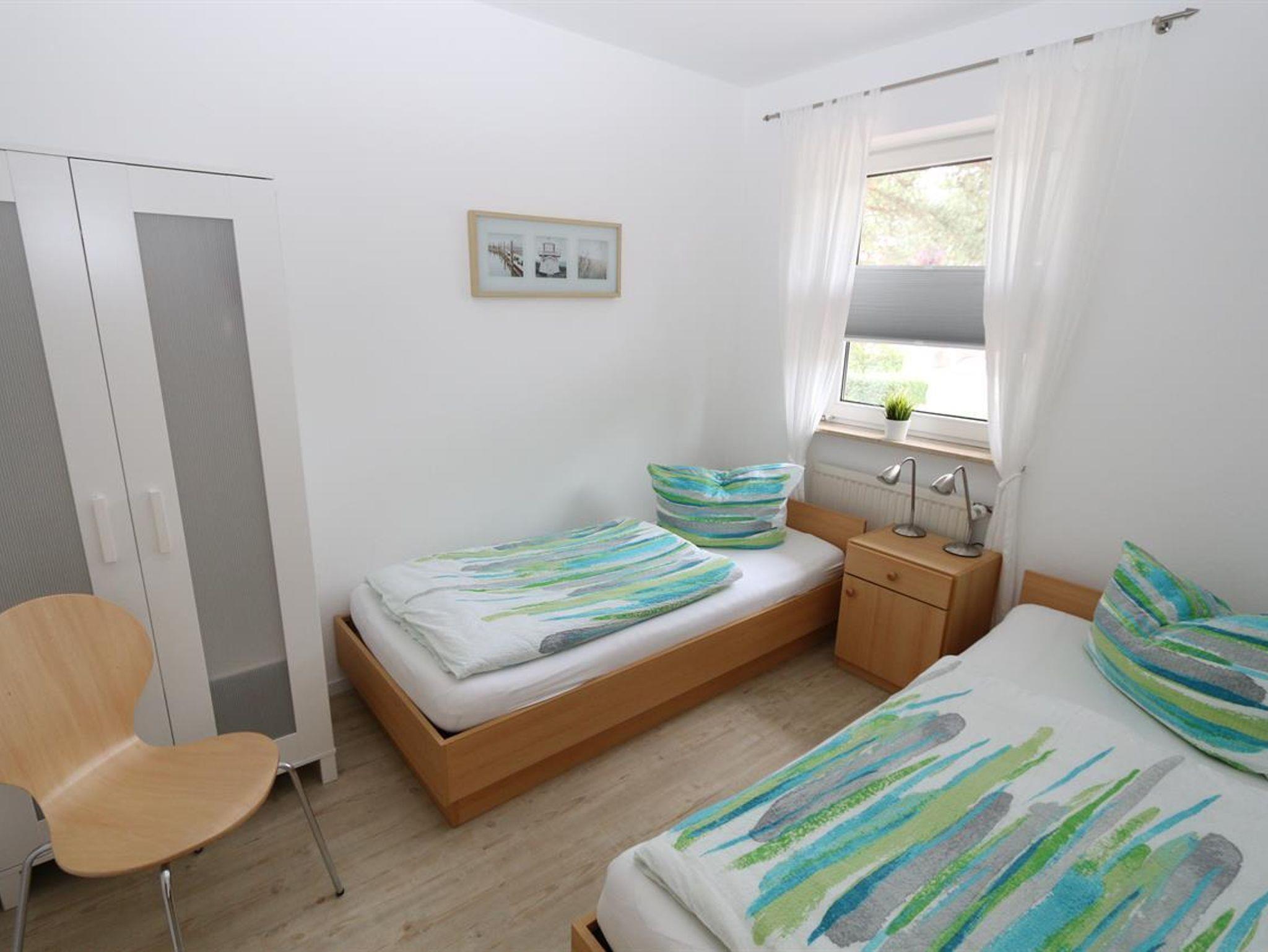 Schlafzimmer mit 2 Einzelbetten, Duschbad, Flur mit Garderobe und Einbauschränken, separater Eingang, Südwest-Balkon