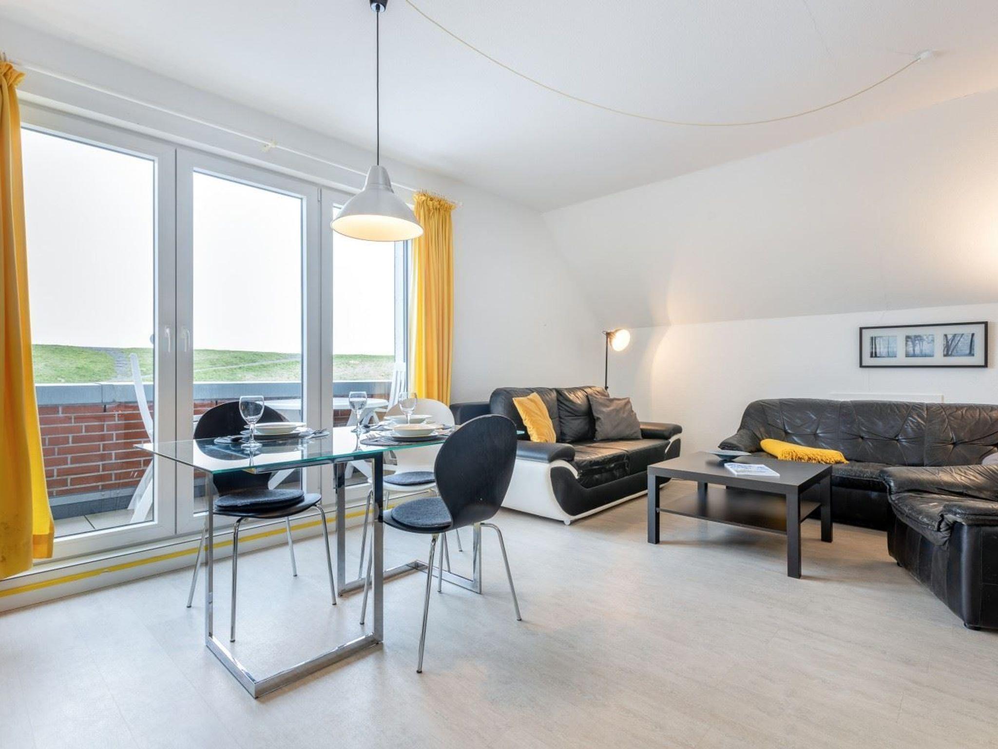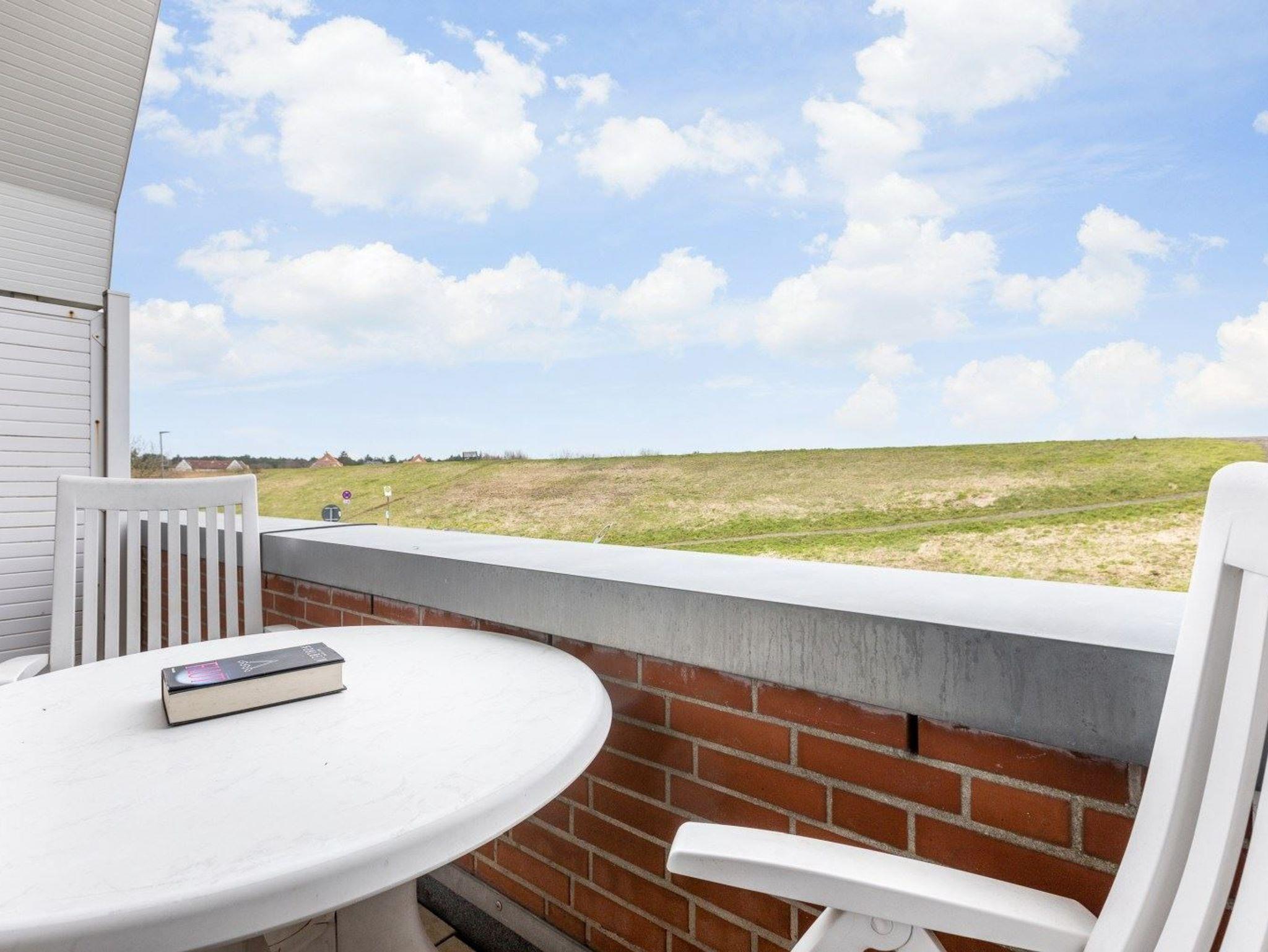Helle 2-Zimmer-Ferienwohnung mit Meerblick und Balkon am Deich in St. Peter-Ording, perfekt für eine entspannte Auszeit.