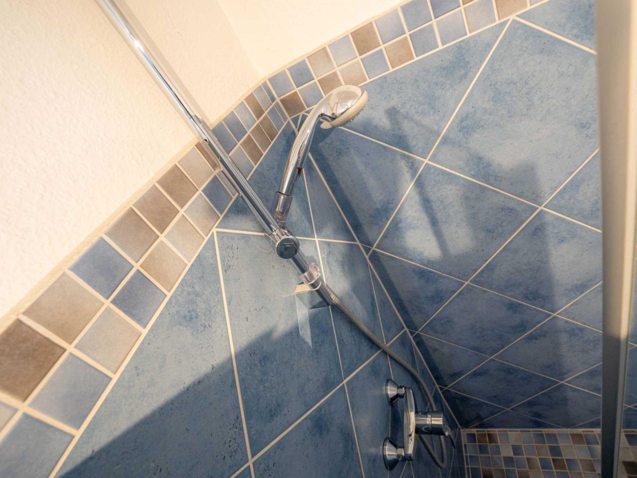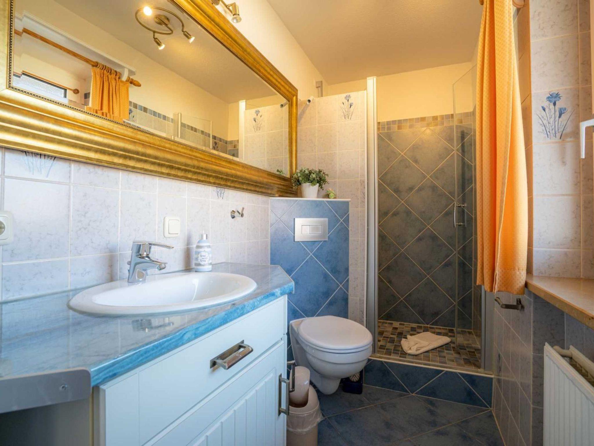Badezimmer (Duschbad) mit Dusche, WC, Tageslicht und Föhn.