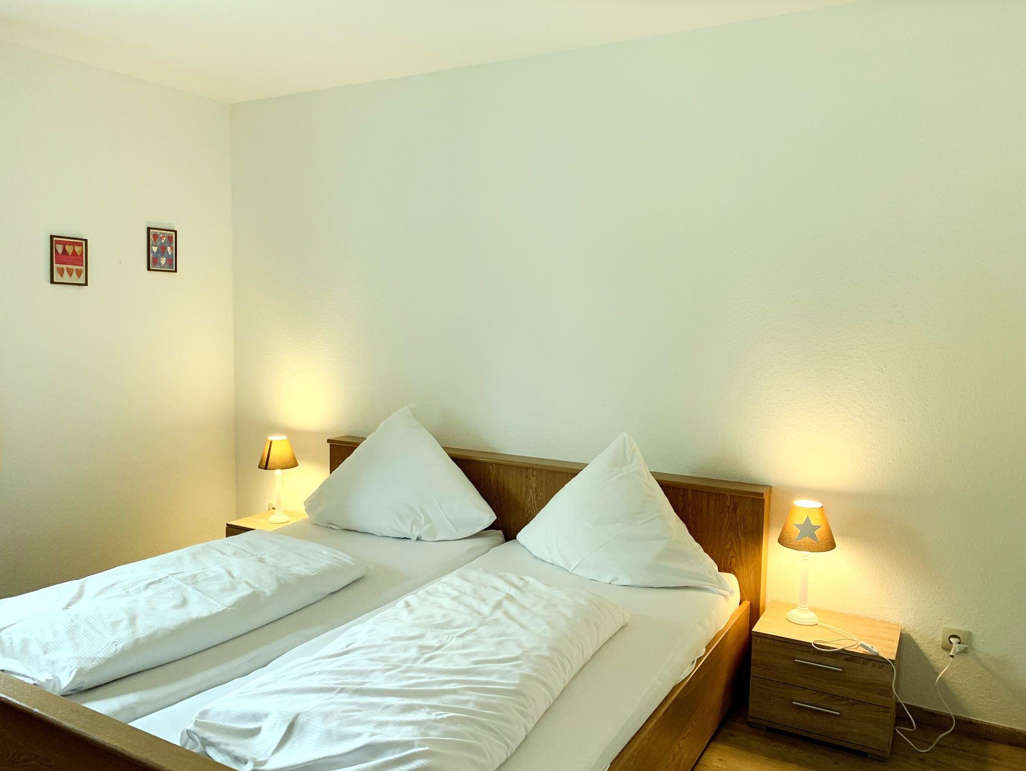 Schlafzimmer: Doppelbett 2,00 x 2,00 m, 2 Nachttische, Kleiderschrank, 2 Stühle, Spiegel