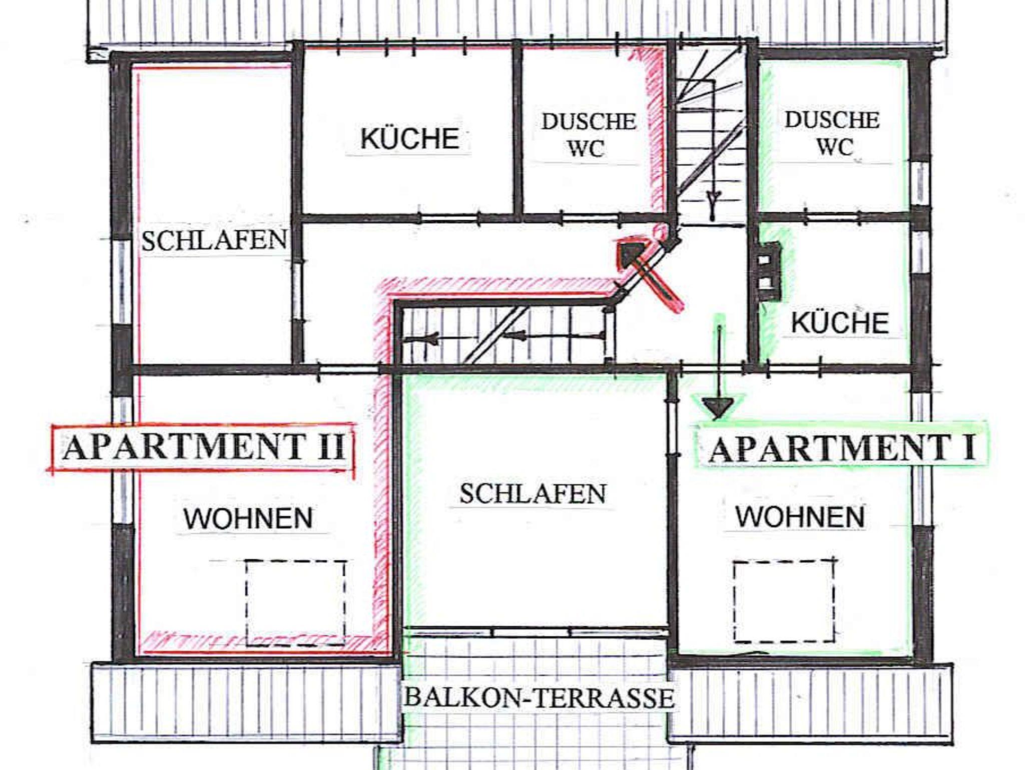 Das Apartment 2 ist ca. 41 m² groß. Es besteht aus einem Wohn-Schlafzimmer, einem Schlafzimmer, Küche und Bad. Den Gästen dieses Apartments stehen der Gartenplatz mit Gartenmöbel rechts vom Hauseingang zur Nutzung zur Verfügung. Die Wohnung ist komfortabel ausgestattet: standardmäßig eingerichtete Küche mit Spülmaschine und Backofen; Duschbad, Föhn, Kosmetikspiegel und Handtuchtrockner; im Wohnzimmer Schlafcouch, Kabel-TV, WLAN Internet-zugang, Radio mit CD-Player. Kinderbett und Hochstuhl werden auf Wunsch bereit gestellt. Die Wohnung ist sehr gut für zwei Personen geeignet, aber auch eine Belegung für zwei Erwachsene mit bis zu 2 Kindern ist gut möglich.