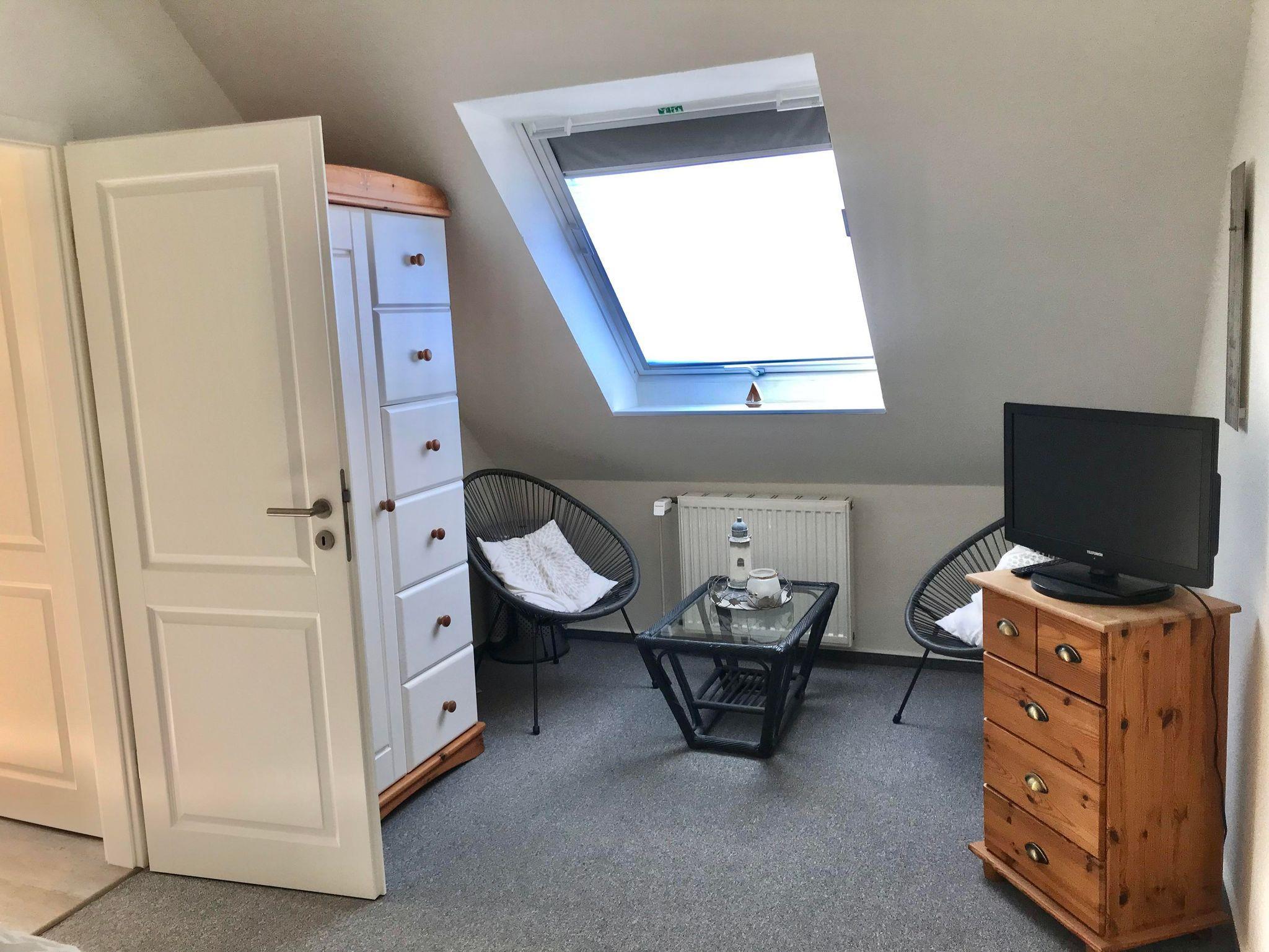 4-Zimmer • eigene Sauna • separate Küche mit Mikrowelle und Geschirrspüler • Westbalkon • 2x Kabel-TV • WLAN (schneller Glasfaseranschluss) • DVD-Player • CD-Radio (ca. 70 qm) über zwei Etagen, Obergeschoss und Dachgeschoss dadurch großzügig geschnitten - für 2 bis 6 Personen