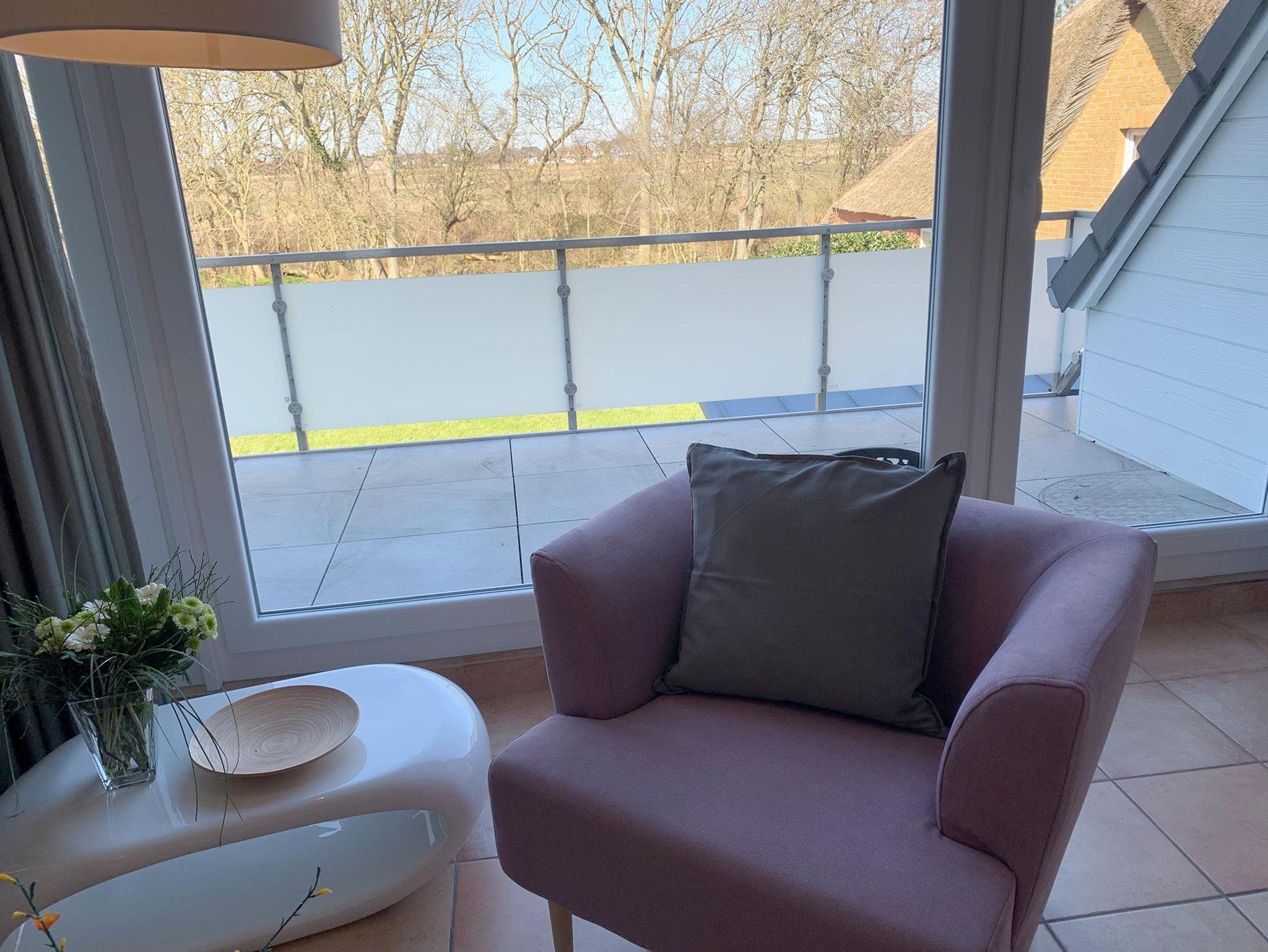 Moderne Ferienwohnung Luna I in St. Peter-Ording, nur 100 m vom Strand und Dünen entfernt, mit Dachterrasse und parkähnlichem Grundstück.