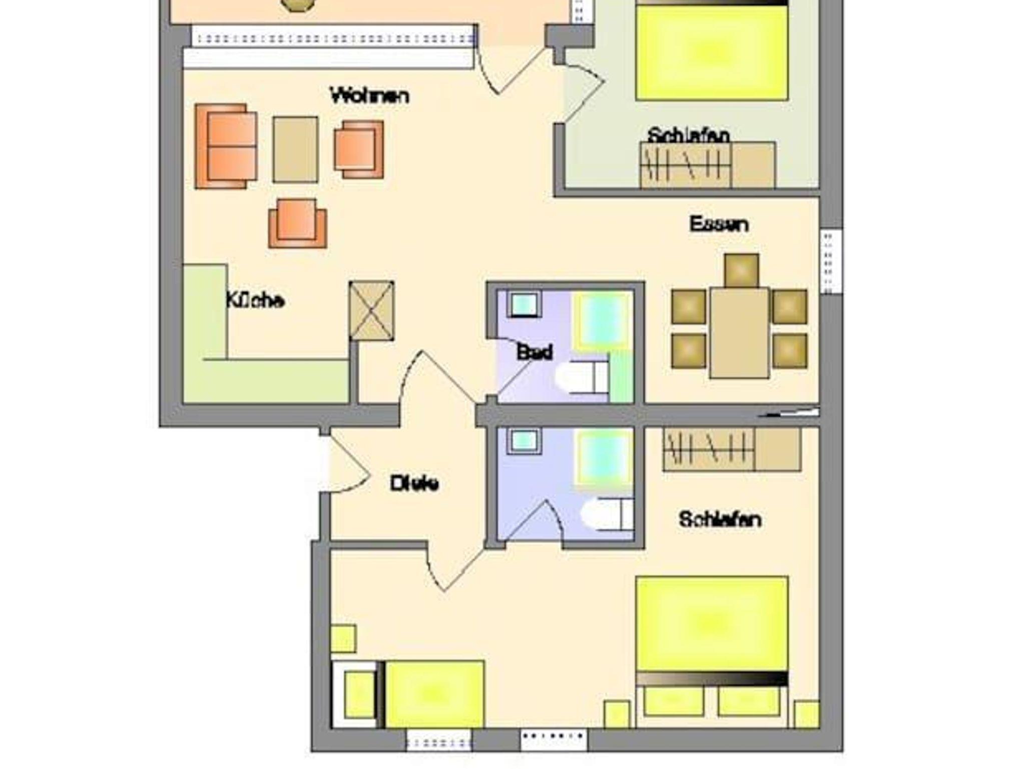 (1 Wohnzimmer, 2 Schlafzimmer, 2 Badezimmer)