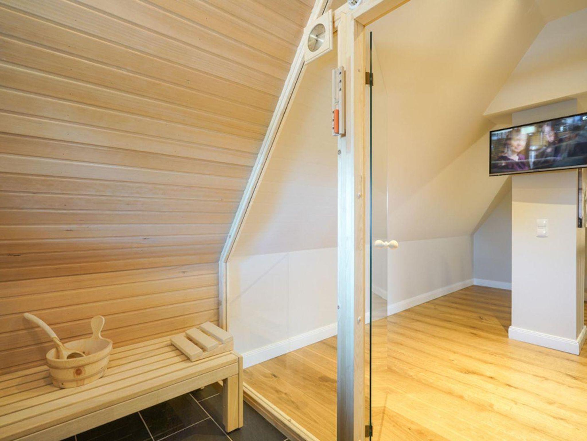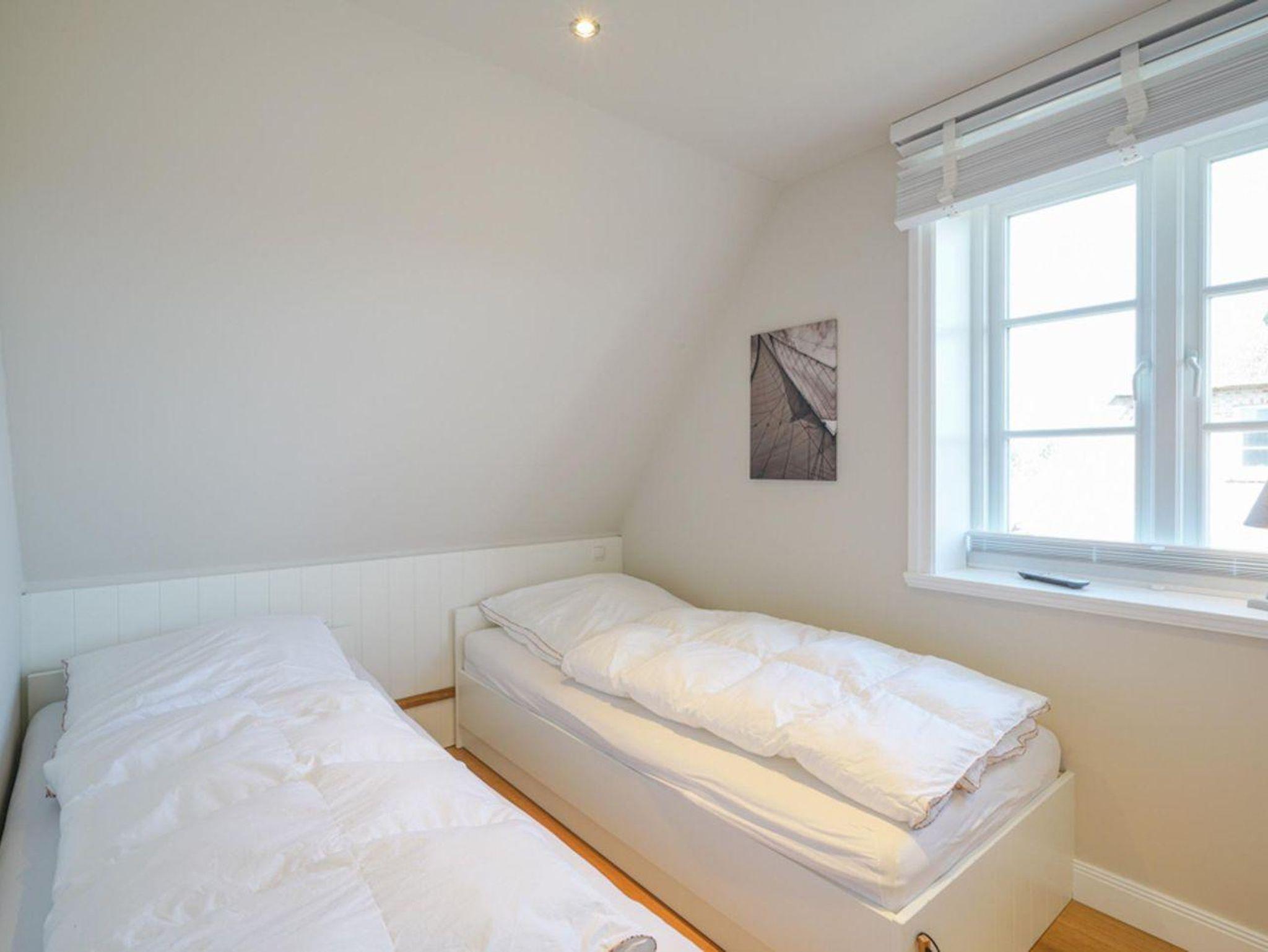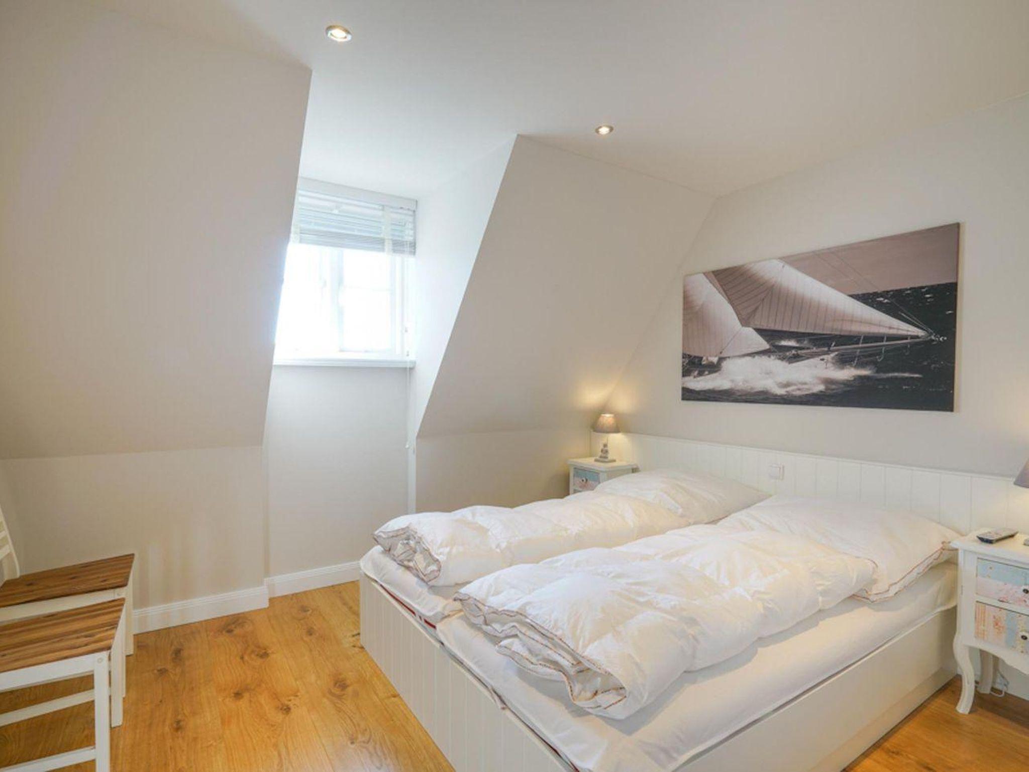 Die luxuriöse Haushälfte unter Reet verfügt über ca. 105 m² Wohnfläche und bietet Platz für 6 Personen. Im Erdgeschoss befindet sich der lichtdurchflutete Wohnraum mit TV, Kamin, einer offenen Küche sowie einem stilvollen Essbereich. Die Wohnräume sind mit wunderschönen Möbeln ausgestattet. Die Küche verfügt über hochwertige Elektrogeräte. An den Wohnbereich schließen sich ein Flur mit ein Hauswirtschaftsraum und ein Duschbad an. Das gesamte Erdgeschoss verfügt über geschmackvolle Natursteinfliesen, die über eine Fußbodenheizung beheizt werden können.Über eine Holztreppe gelangt man in das mit Parkett ausgelegte Obergeschoss. Dieses verfügt ebenfalls über eine Fußbodenheizung. Ebenfalls drei Schlafzimmer, Schlafzimmer I mit einem Doppelbett 1,80 x 2,00 m, Schlafzimmer II mit 2 Einzelbetten und Schlafzimmer 3 mit 2 Einzelbetten die zu einem Doppelbett zusammengeschoben werden können, jeweils mit TV ausgestattet. Einbauschränke gewähren Ihnen hinreichend Ablageflächen. Darüber hinaus befindet sich im Obergeschoss ein weiteres Bad mit Dusche. Vom Obergeschoss führt die Holztreppe hinauf in das Dachgeschoss. Hier befindet sich eine sehr große Sauna mit Entspannungsbereich. Dieses wunderschöne Haus lässt keine Wünsche offen und bringt Sie sofort in Urlaubsstimmung.