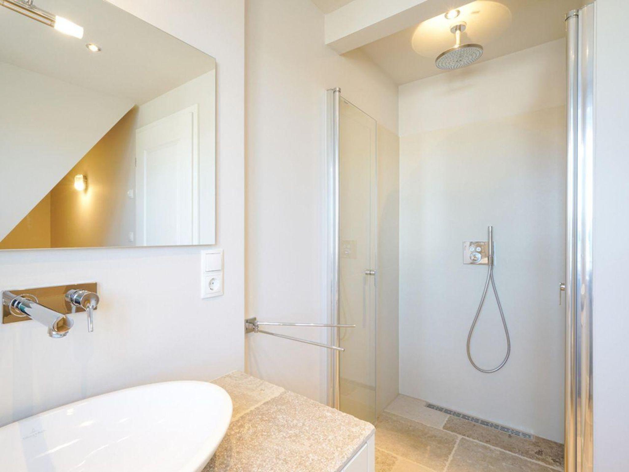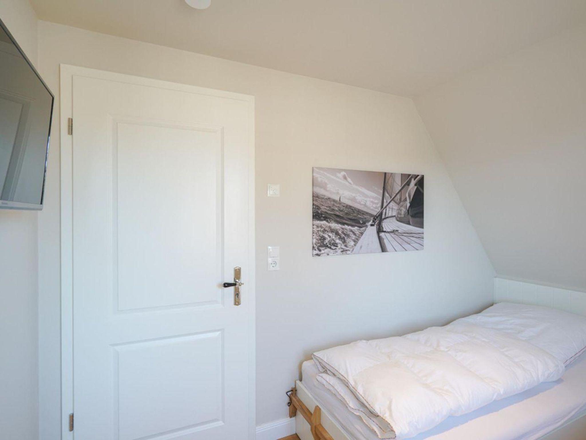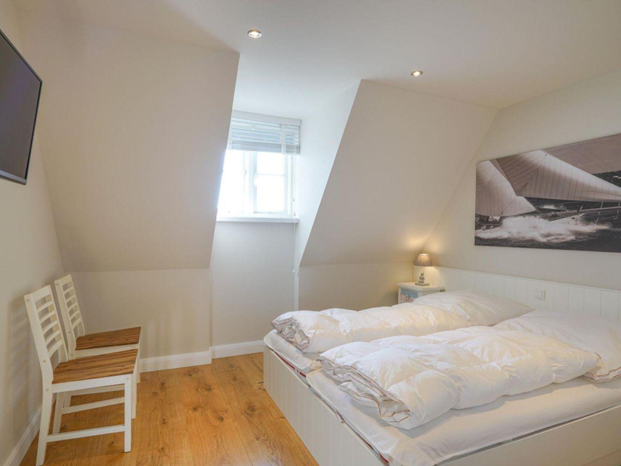 Die luxuriöse Haushälfte unter Reet verfügt über ca. 105 m² Wohnfläche und bietet Platz für 6 Personen. Im Erdgeschoss befindet sich der lichtdurchflutete Wohnraum mit TV, Kamin, einer offenen Küche sowie einem stilvollen Essbereich. Die Wohnräume sind mit wunderschönen Möbeln ausgestattet. Die Küche verfügt über hochwertige Elektrogeräte. An den Wohnbereich schließen sich ein Flur mit ein Hauswirtschaftsraum und ein Duschbad an. Das gesamte Erdgeschoss verfügt über geschmackvolle Natursteinfliesen, die über eine Fußbodenheizung beheizt werden können.Über eine Holztreppe gelangt man in das mit Parkett ausgelegte Obergeschoss. Dieses verfügt ebenfalls über eine Fußbodenheizung. Ebenfalls drei Schlafzimmer, Schlafzimmer I mit einem Doppelbett 1,80 x 2,00 m, Schlafzimmer II mit 2 Einzelbetten und Schlafzimmer 3 mit 2 Einzelbetten die zu einem Doppelbett zusammengeschoben werden können, jeweils mit TV ausgestattet. Einbauschränke gewähren Ihnen hinreichend Ablageflächen. Darüber hinaus befindet sich im Obergeschoss ein weiteres Bad mit Dusche. Vom Obergeschoss führt die Holztreppe hinauf in das Dachgeschoss. Hier befindet sich eine sehr große Sauna mit Entspannungsbereich. Dieses wunderschöne Haus lässt keine Wünsche offen und bringt Sie sofort in Urlaubsstimmung.