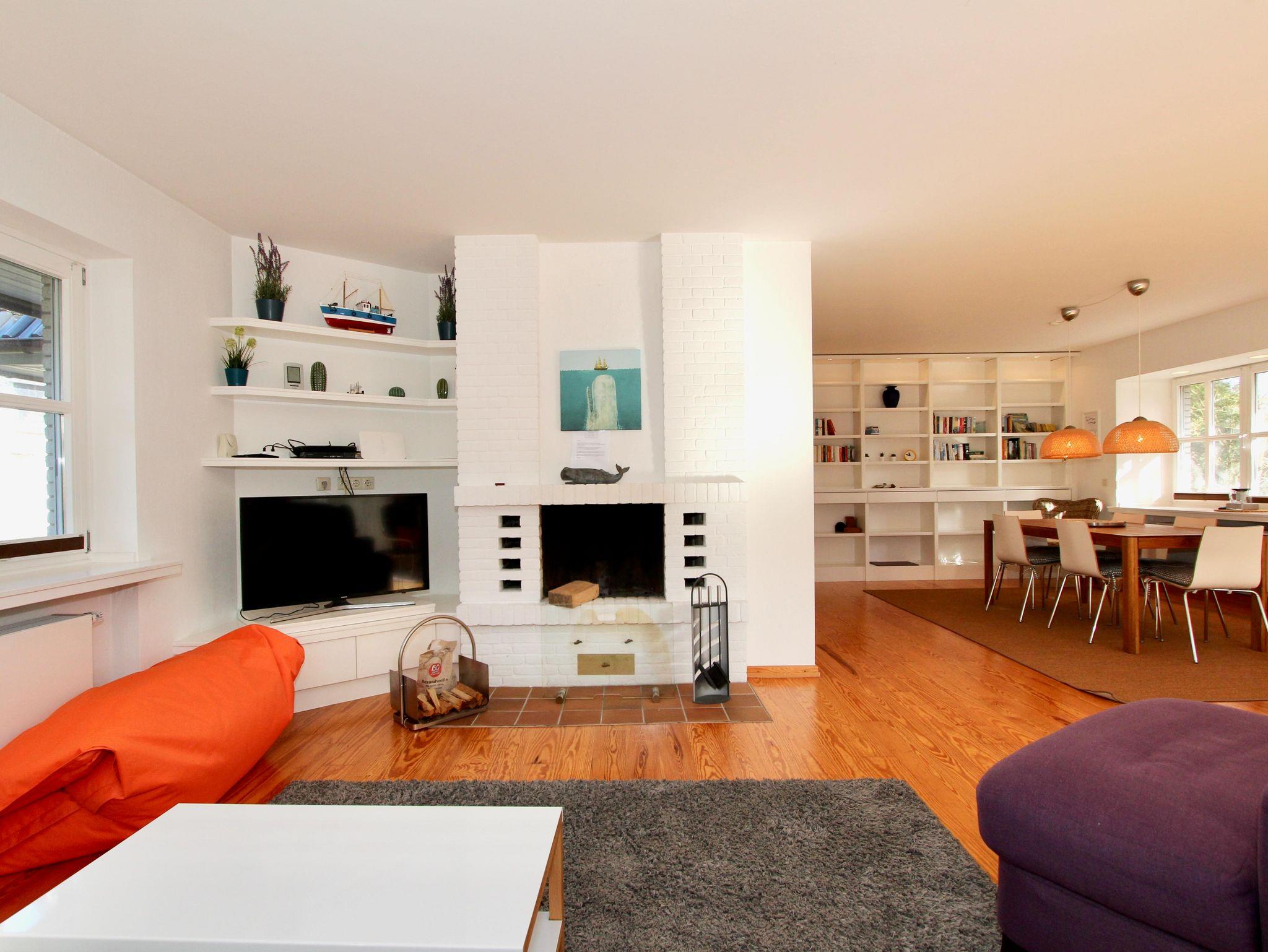 An kalten Winterabenden lädt der offene Kamin zum Entspannen ein, bei einem guten Buch (in unseren Regalen kann man stöbern) oder zu gemütlichen Spielabenden bei einem heissen Tee. Das ein oder andere Spiel oder Puzzle gibt es auch. DVDs lassen sich im Schrank unter dem Smart-TV im Wohnzimmer finden.