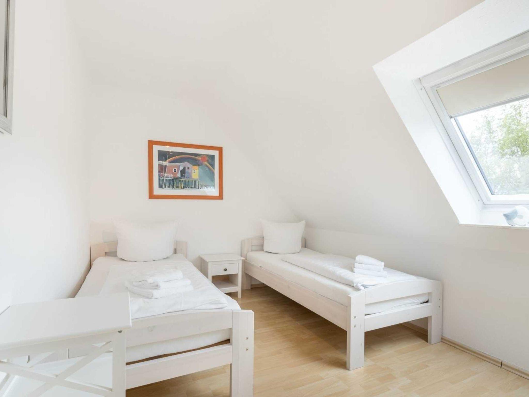 2. Schlafzimmer mit 2 getrennten Einzelbetten (je 90 x 200cm), Stuhl und Kleiderschrank.