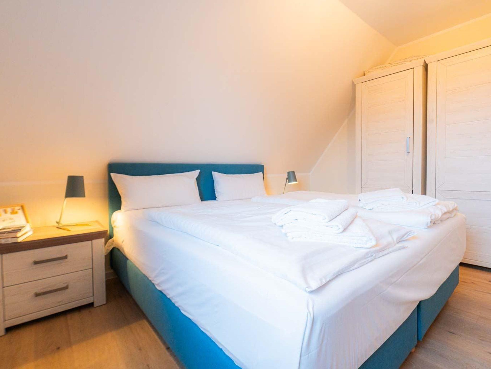 1. Schlafzimmer mit Doppelbett (180x200cm, Boxspring) und 2 Kleiderschränken.