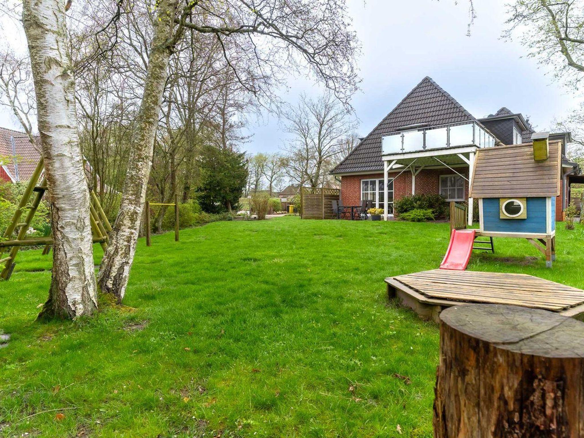 Der große Garten mit Strandkorb bietet eine alternative Entspannungsmöglichkeit zur Terrasse. Die Lage ist absolut ruhig und dennoch nur 7 Fußminuten vom Badzentrum und etwa 15 Fußminuten vom Ordinger Strand entfernt.