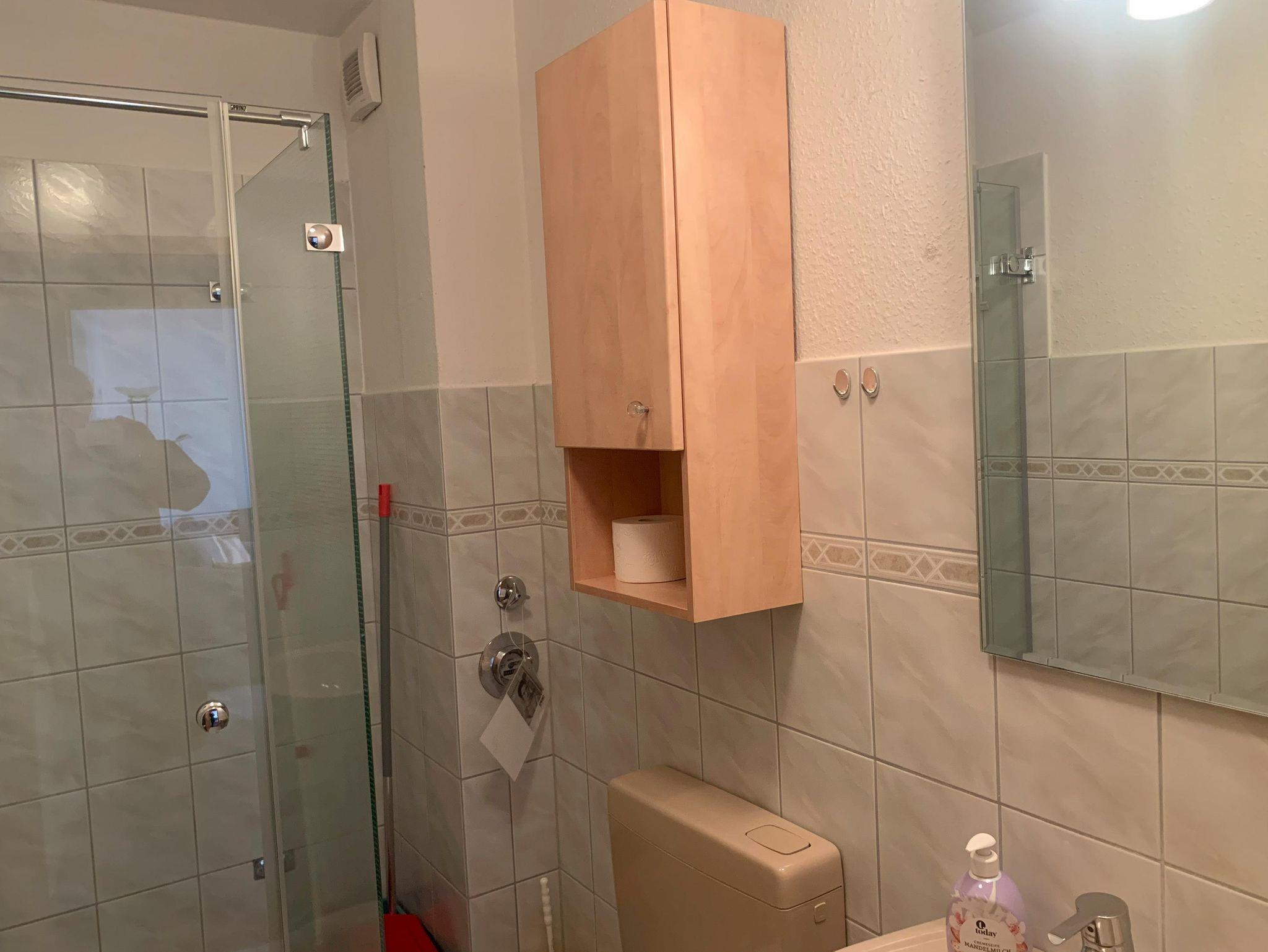 BadDusche, Waschbecken, WC, Hängeschrank, Fön