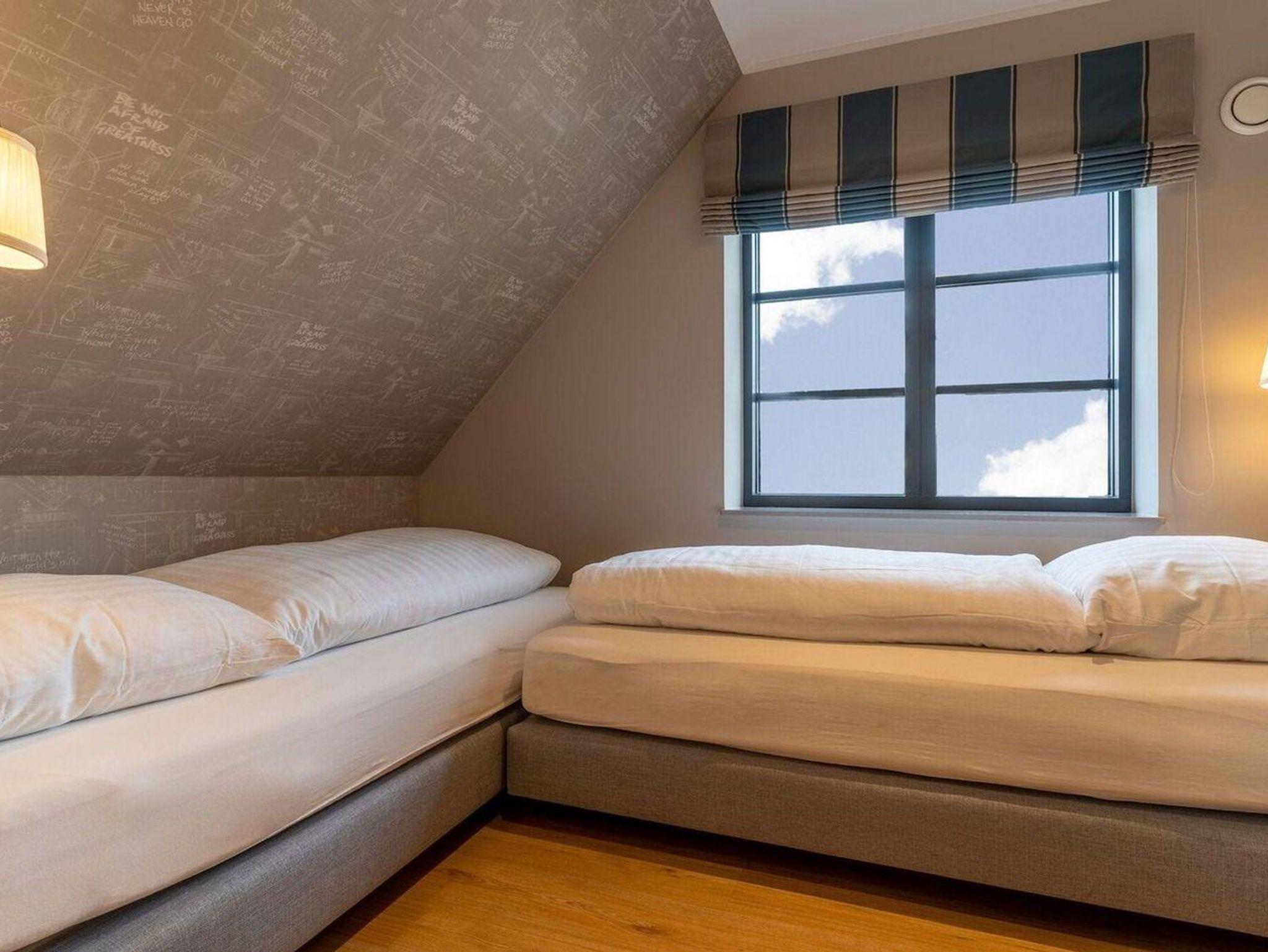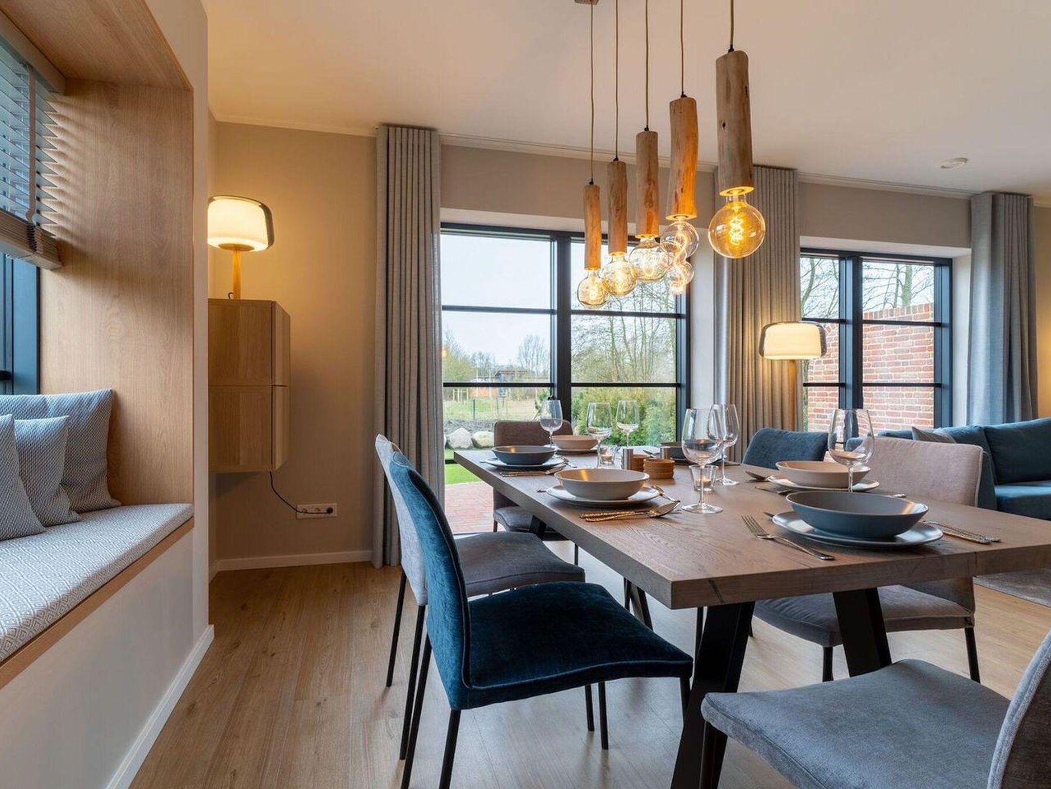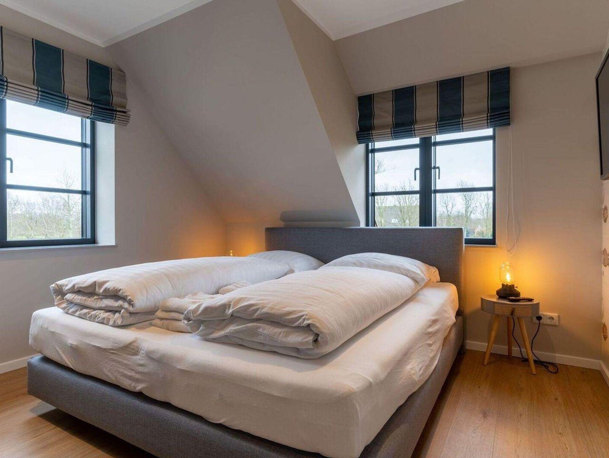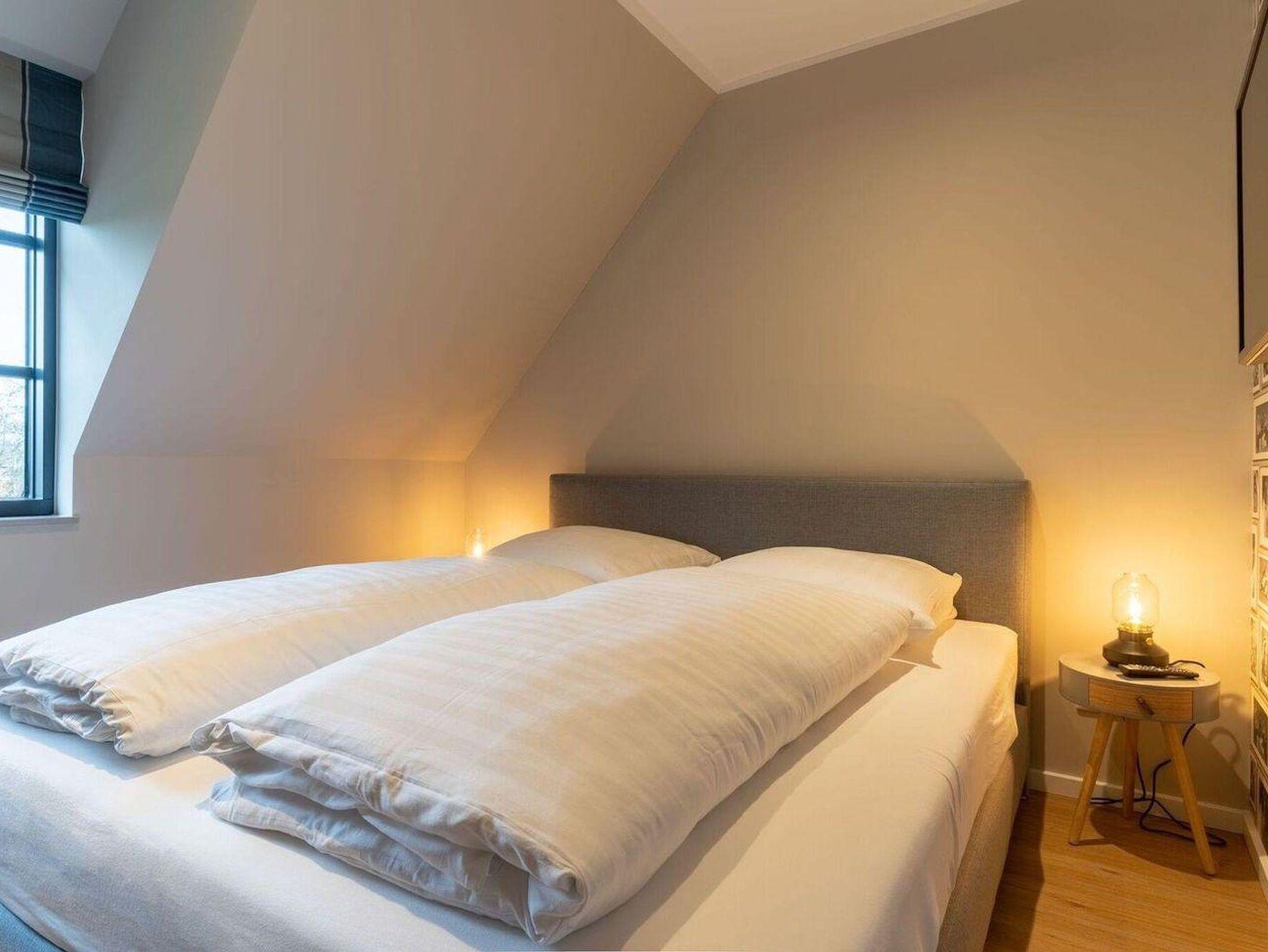 Im Erdgeschoss erwartet Sie ein lichtdurchflutetes Wohnzimmer mit Sofalandschaft, einer offenen Küche im Landhausstil sowie einem integrierten Esszimmer mit hochwertigen Christine Kröncke Möbeln. Besonderes Highlight im Wohnbereich ist die gemütliche Sitzbank direkt im Erkerfenster, die ganz sicher zu einem Ihrer Lieblingsplätze im Haus wird, um ein gutes Buch zu lesen oder den ersten Kaffee am Morgen zu genießen. Vom Flur mit Garderobe, welche ausreichend Platz für Jacken und Schuhe bietet, gelangen Sie in ein Duschbad, sowie in den Hauswirtschaftsraum mit Waschmaschine und Trockner. Eine vom Wohnzimmer aus abgehenden Treppe führt ins geräumige Obergeschoss. Zwei Schlafzimmer mit je einem Boxspring-Doppelbett (180x200 m) sind ausgestattet mit TV und großen Kleiderschränken. Ein drittes Schlafzimmer besitzt zwei große Boxspring-Einzelbetten (100x200 m) und lässt Ihre Kinder, die Großeltern oder liebe Freunde gemütlich und ruhig schlafen. Ein zweites vollausgestattetes Badezimmer im OG, mit offener Dusche und zwei einzelnen Waschbecken runden das hochwertige Hauskonzept ab und lassen keine Wünsche offen.