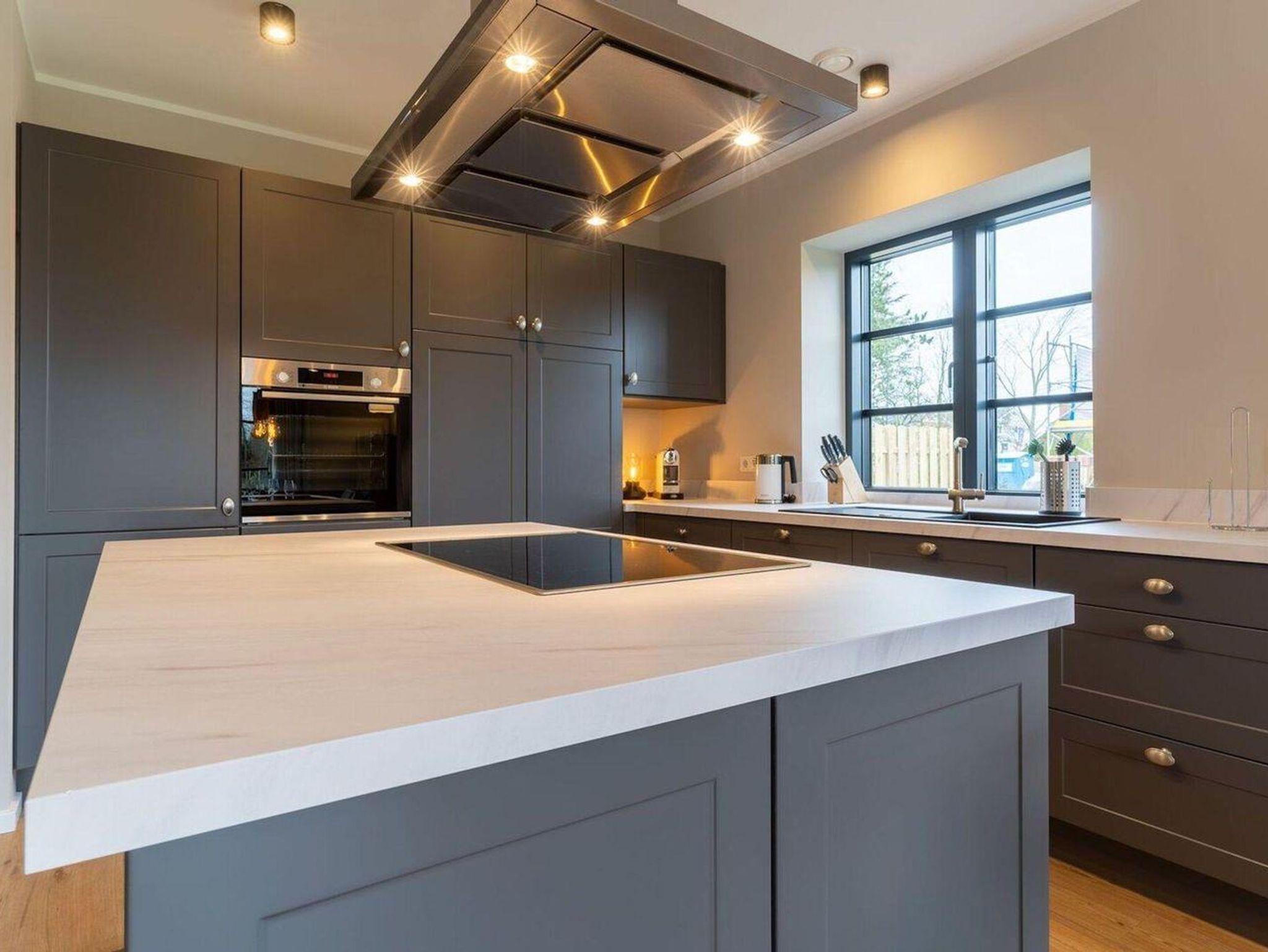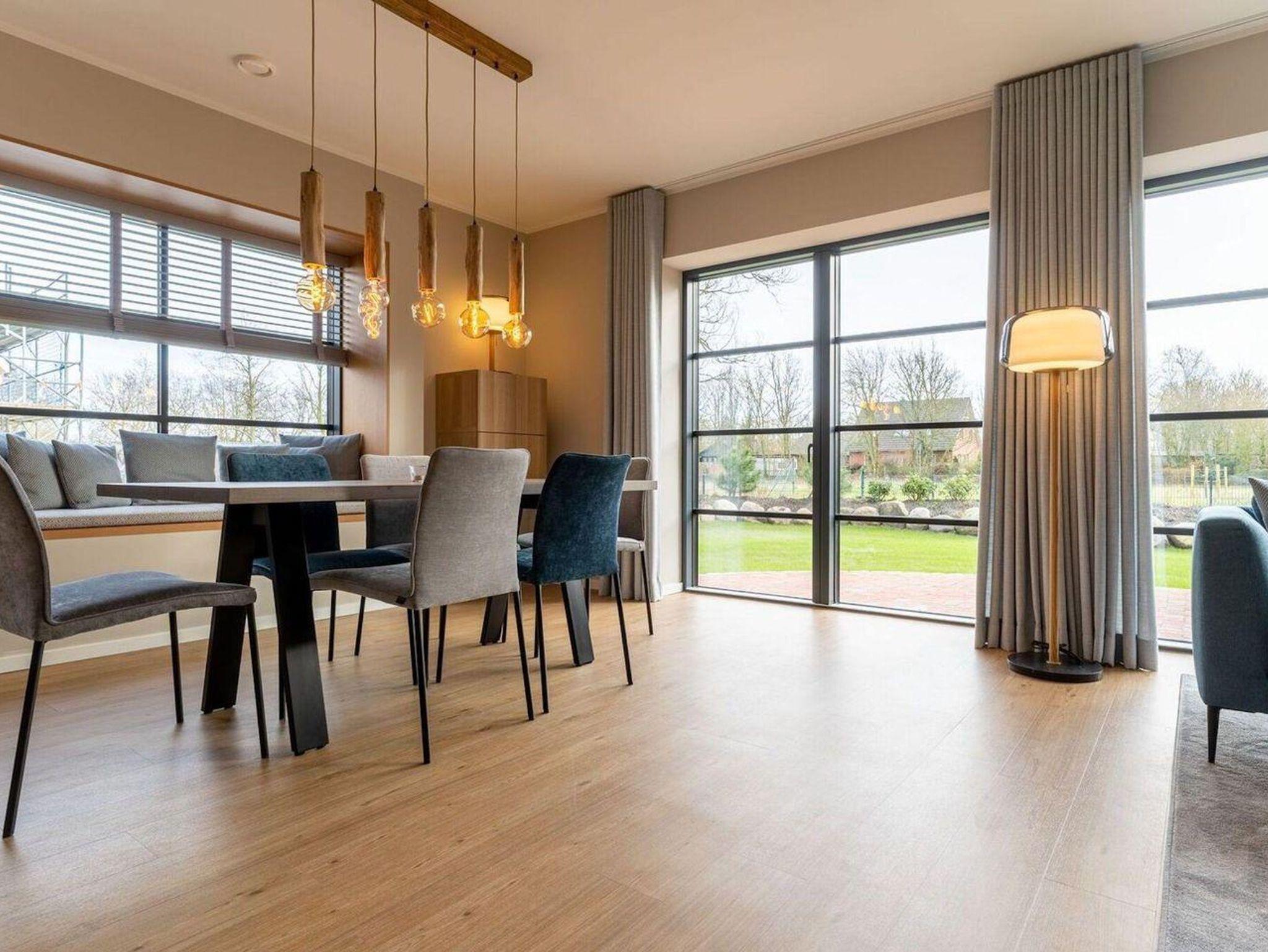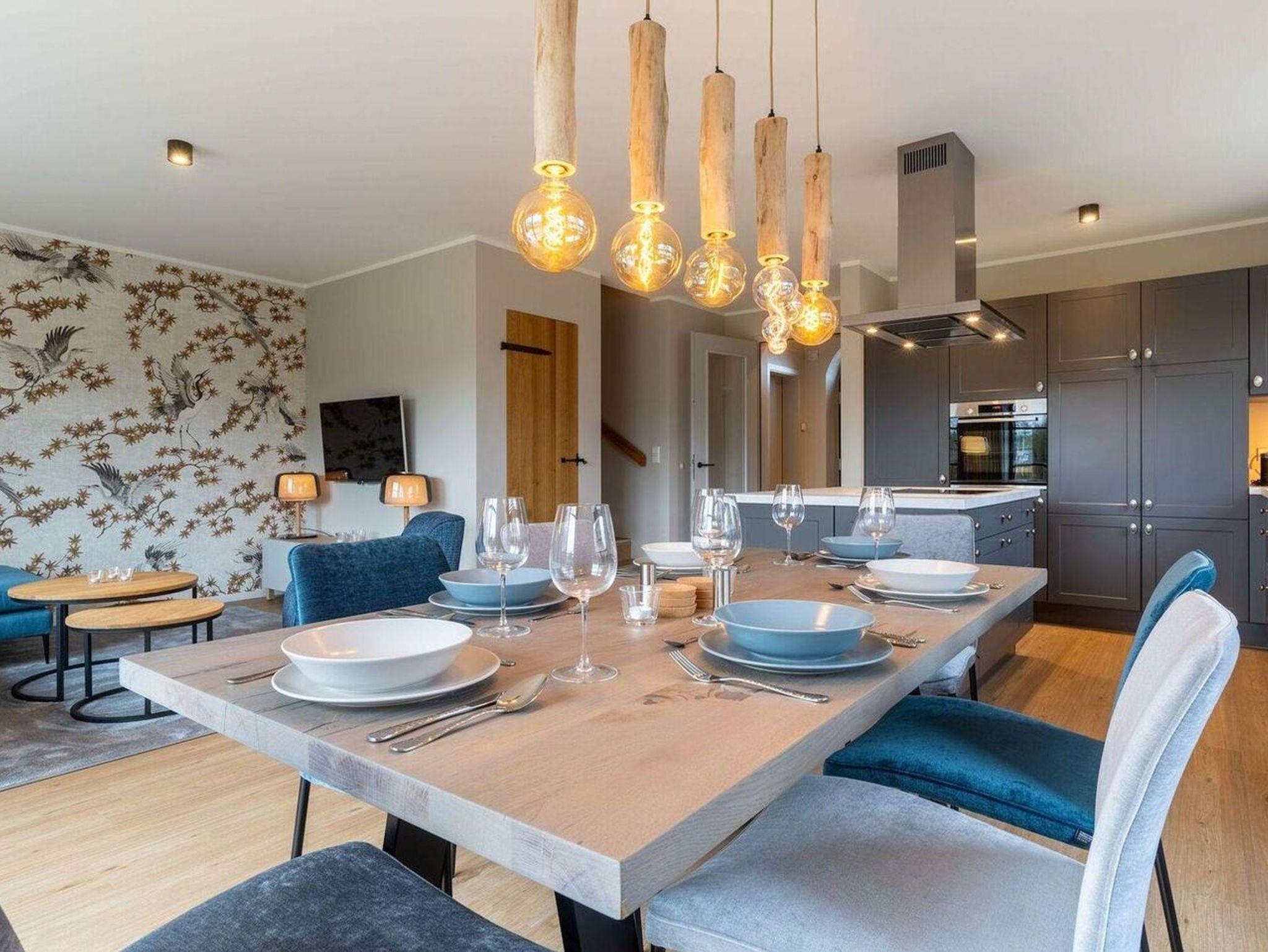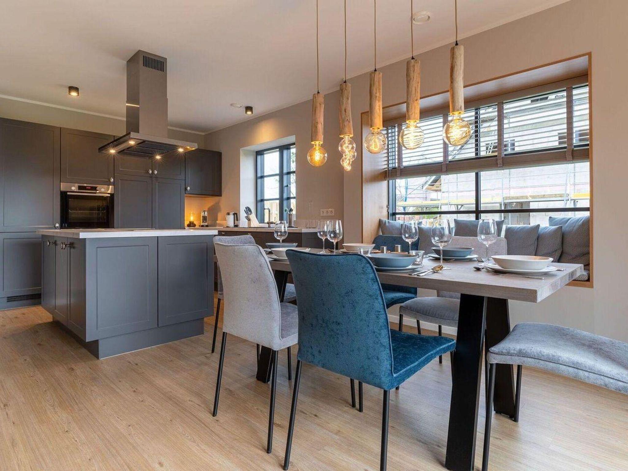 Im Erdgeschoss erwartet Sie ein lichtdurchflutetes Wohnzimmer mit Sofalandschaft, einer offenen Küche im Landhausstil sowie einem integrierten Esszimmer mit hochwertigen Christine Kröncke Möbeln. Besonderes Highlight im Wohnbereich ist die gemütliche Sitzbank direkt im Erkerfenster, die ganz sicher zu einem Ihrer Lieblingsplätze im Haus wird, um ein gutes Buch zu lesen oder den ersten Kaffee am Morgen zu genießen. Vom Flur mit Garderobe, welche ausreichend Platz für Jacken und Schuhe bietet, gelangen Sie in ein Duschbad, sowie in den Hauswirtschaftsraum mit Waschmaschine und Trockner. Eine vom Wohnzimmer aus abgehenden Treppe führt ins geräumige Obergeschoss. Zwei Schlafzimmer mit je einem Boxspring-Doppelbett (180x200 m) sind ausgestattet mit TV und großen Kleiderschränken. Ein drittes Schlafzimmer besitzt zwei große Boxspring-Einzelbetten (100x200 m) und lässt Ihre Kinder, die Großeltern oder liebe Freunde gemütlich und ruhig schlafen. Ein zweites vollausgestattetes Badezimmer im OG, mit offener Dusche und zwei einzelnen Waschbecken runden das hochwertige Hauskonzept ab und lassen keine Wünsche offen.