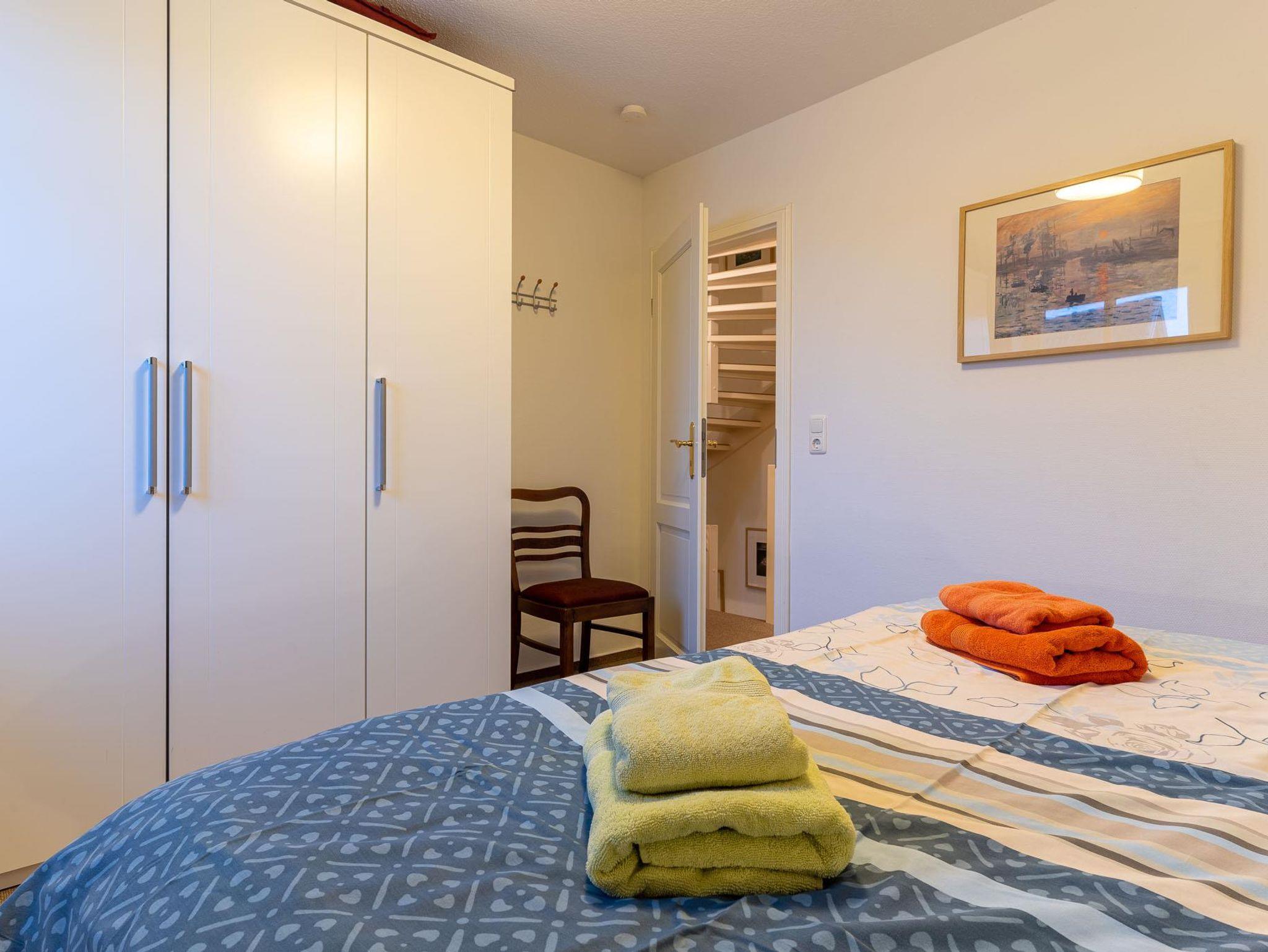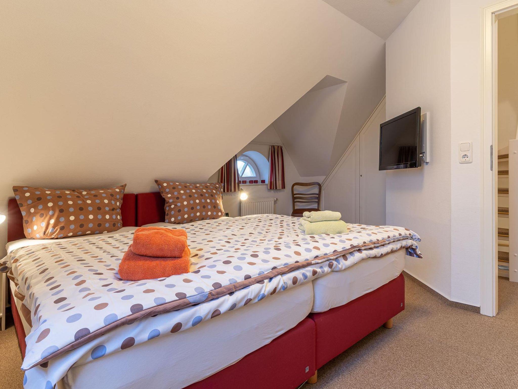 Vom dritten Schlafzimmer im Dachgeschoß haben Sie einen herrlichen Blick aus den Velux-Fenstern über den Deich und dem Ordinger Strand bis zur Nordsee.