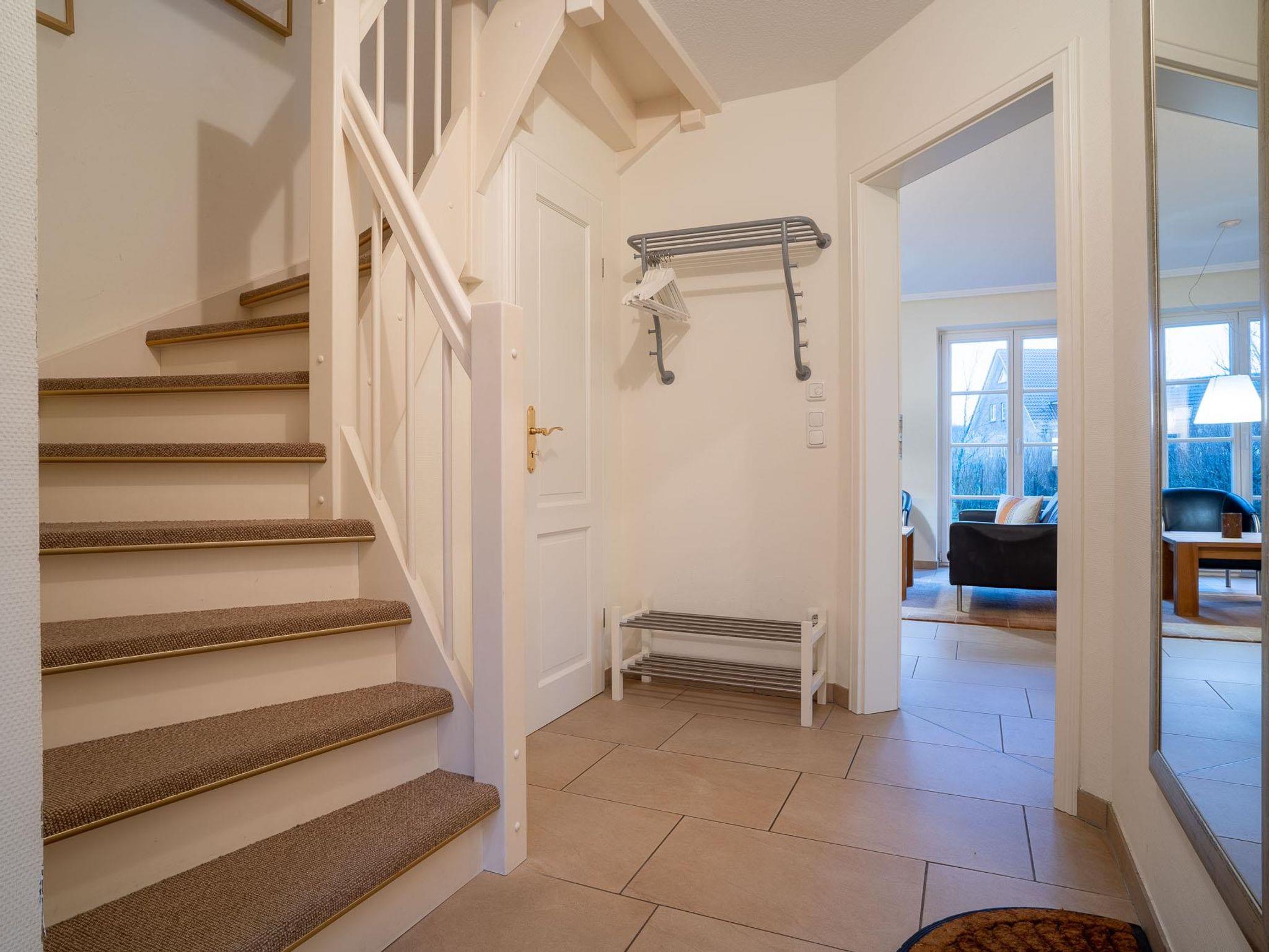 Im Erdgeschoss befindet sich das gemütliche Wohnzimmer mit dän. Kaminofen und großem Flachbildschirm mit DVD-Player sowie Stereo-Anlage mit CD Player. Der Esstisch sowie der hochwertige Küchenbereich mit E-Herd mit Ceran-Kochfeld und Backofen (mit Umluft u.s.w.), Kühlschrank (mit Gefrierfach), Mikrowelle (ohne Grill u. Heißluft), Geschirrspüler, Bestecken, Geschirr und Gläser für 6 Personen wird Ihnen gefallen.