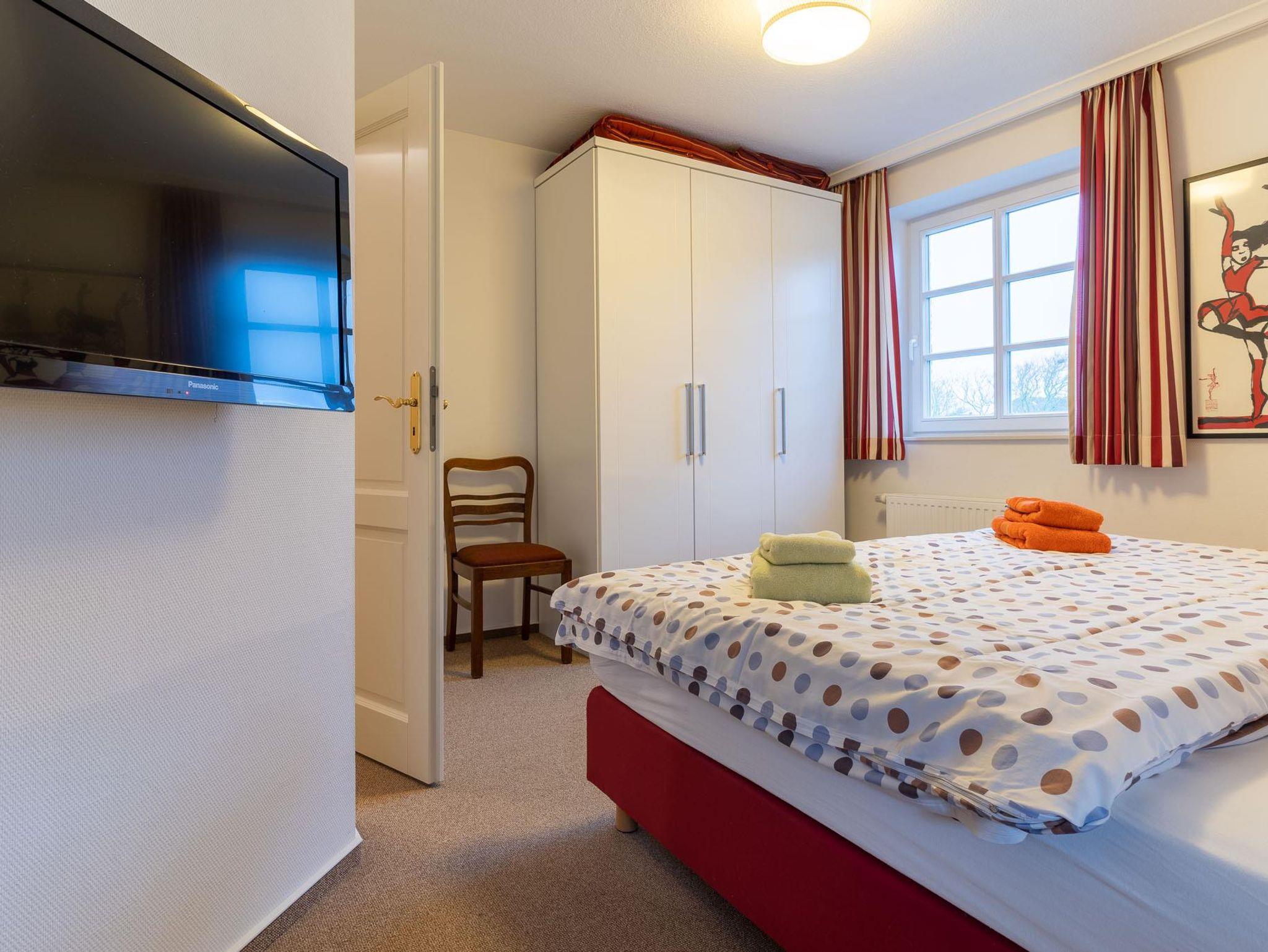 Im ersten Obergeschoß befinden sich die Räume für Träume. Das blaue Zimmer, das rote Zimmer mit zusätzlichem Flachbildschirm an der Wand und das große helle Bad mit Dusche, zwei Waschbecken und dem Handtuchtrockner.