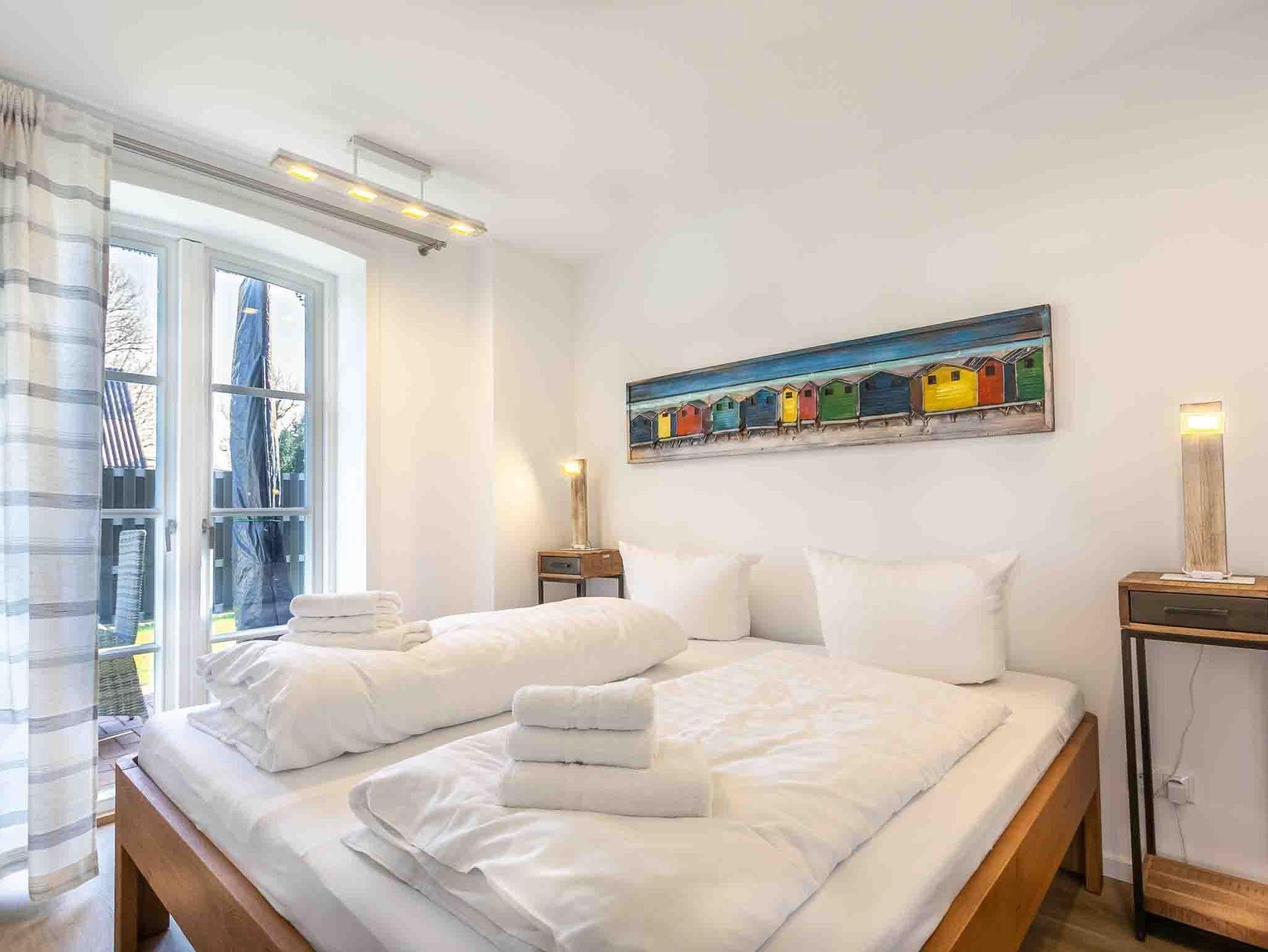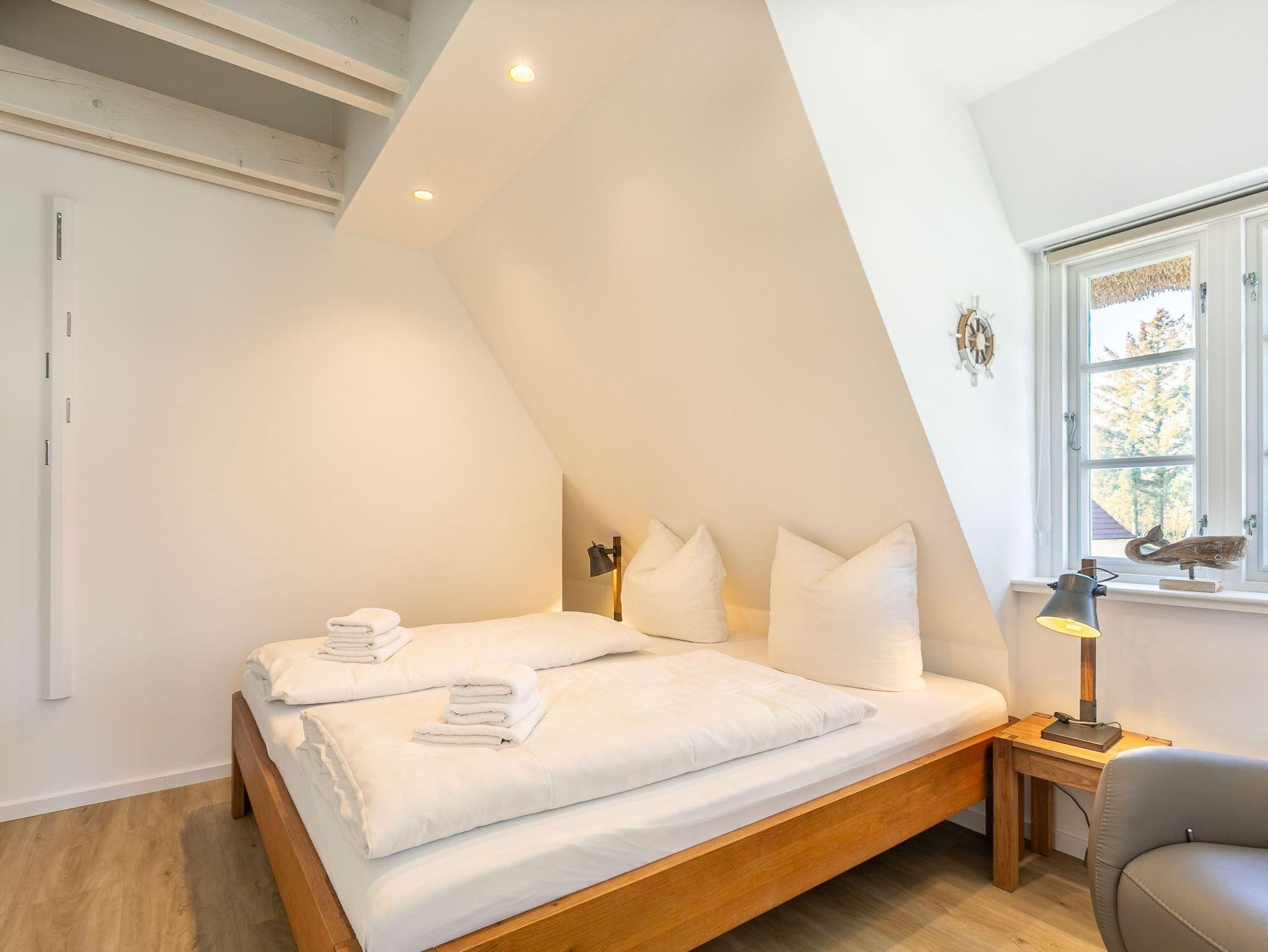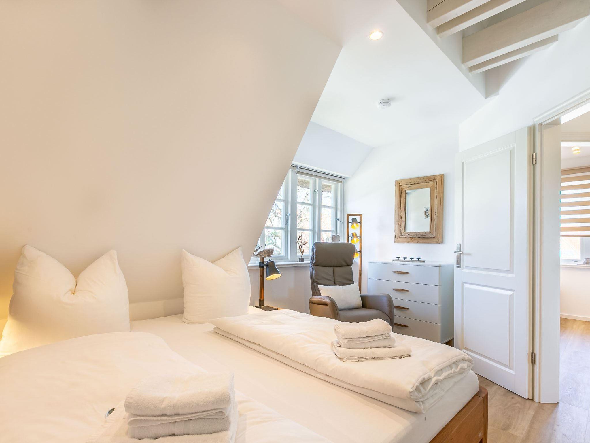 2. Schlafzimmer (OG) mit Doppelbett (2x 90x200cm), Kleiderschrank, Kommode und Sessel.