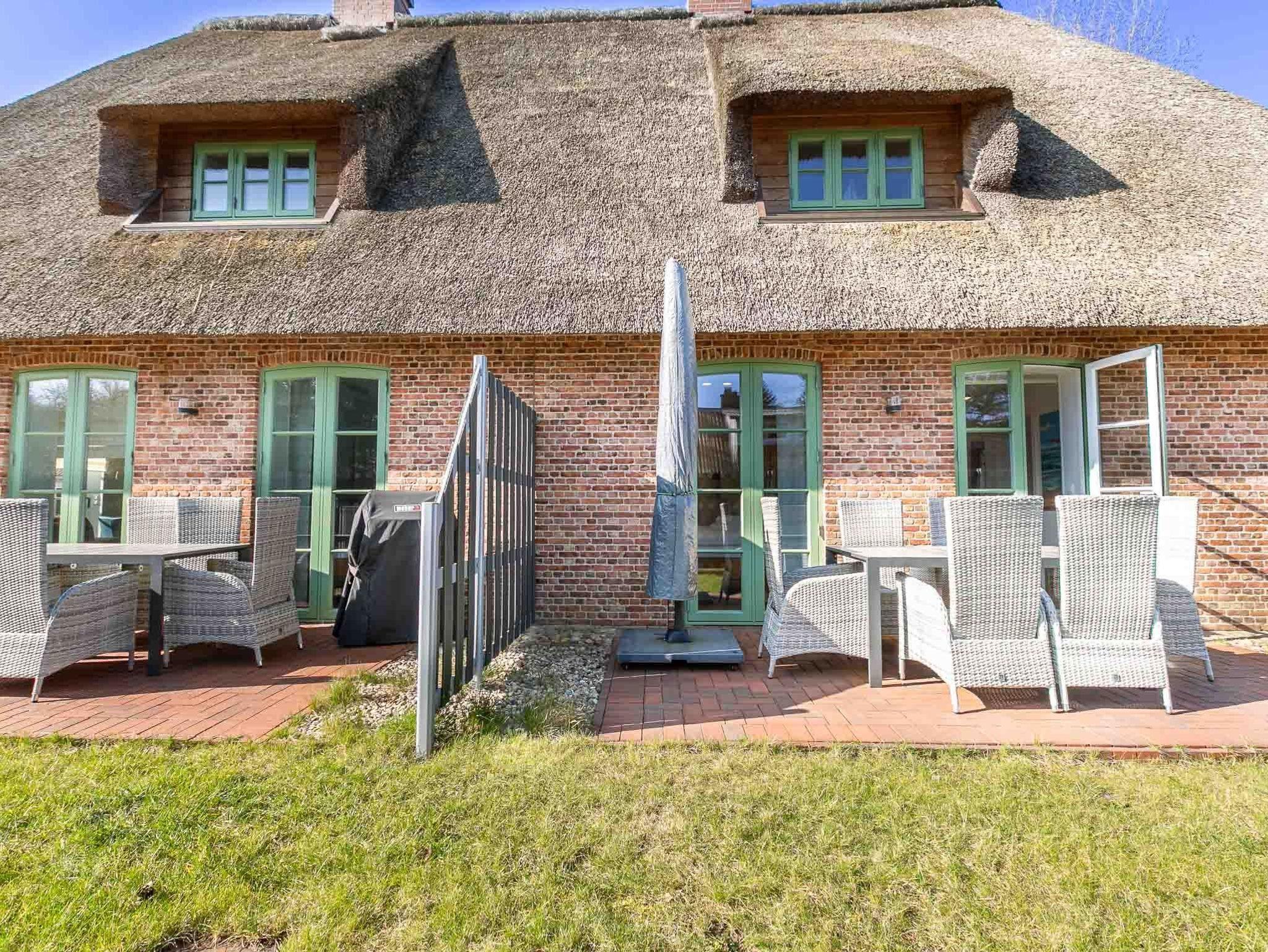 Exklusive Ferienhaushälfte unter Reet in St. Peter-Ording, zentral und deichnah mit Terrasse und moderner Ausstattung.