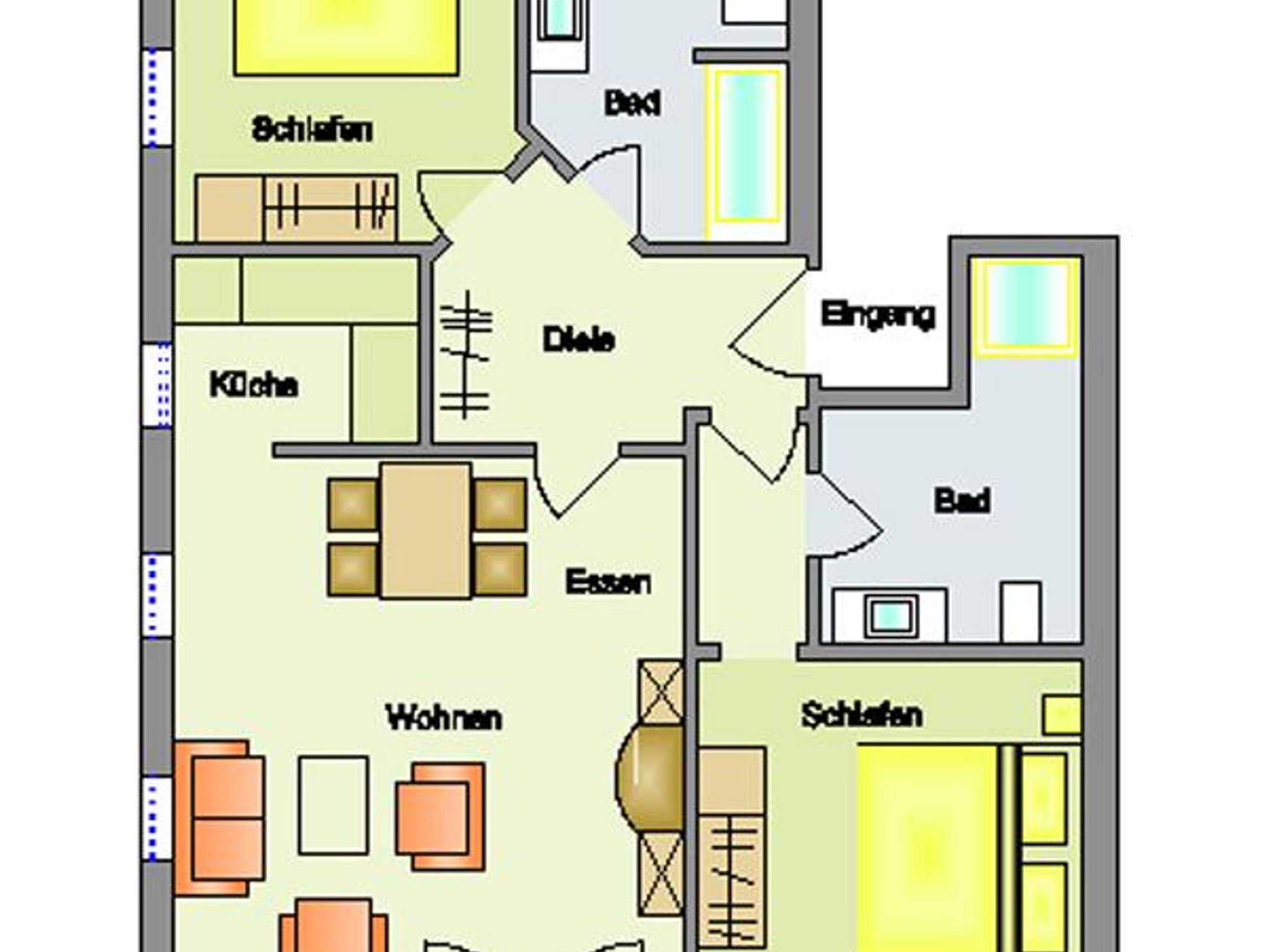 (1 Wohnzimmer, 2 Schlafzimmer, 2 Badezimmer)