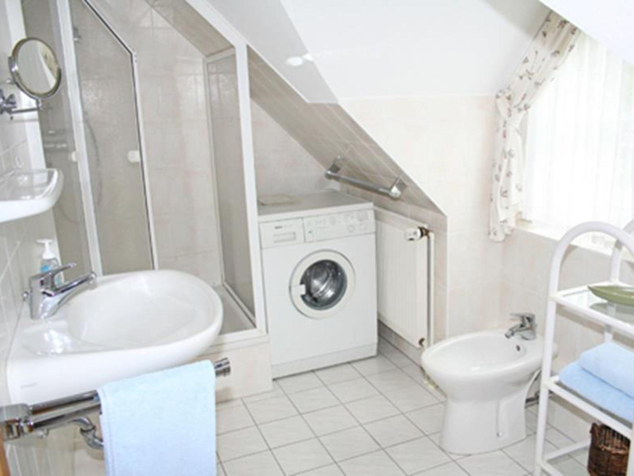 Bad Duschbad mit Waschbecken, Waschmaschine und Trockner