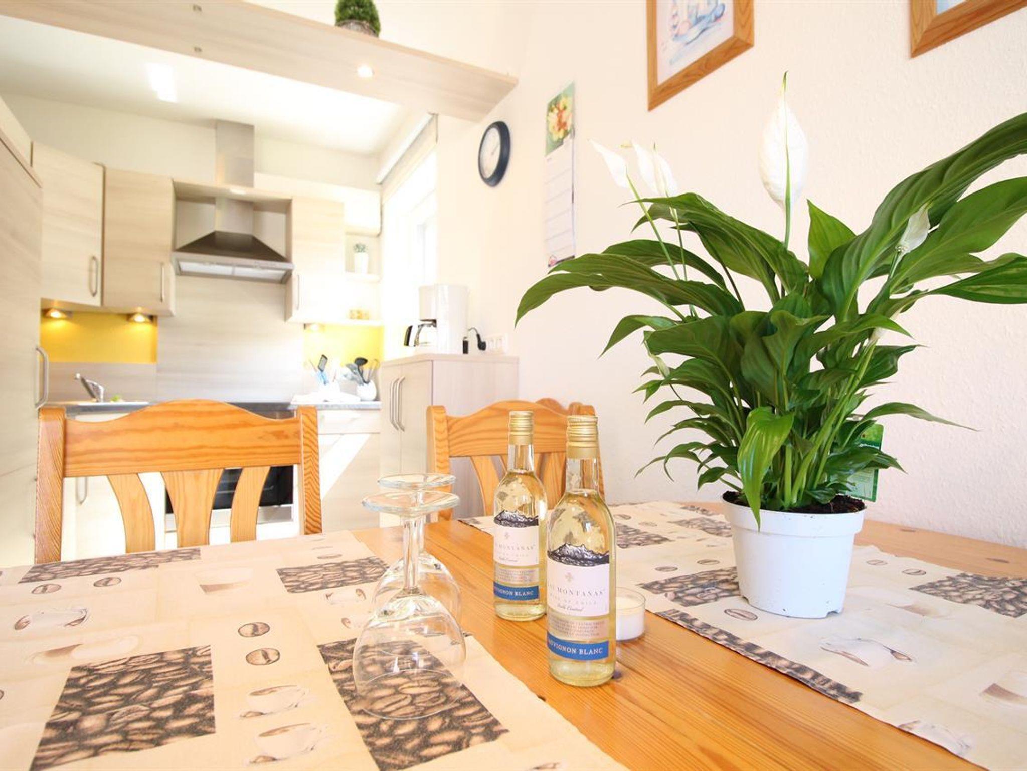 Die liebevoll und gemütliche mit dänischen Kiefernmöbeln eingerichtete Doppelhaushälfte für 4 Personen liegt in einer Sackgasse. Das Haus hat ca. 80qm Wohnfläche und geht über 2 Etagen. Durch die Terrassentür kommen Sie direkt vom Wohnraum auf die große Terrasse und in den Garten mit Gartenmöbeln, Strandkorb und Grill.