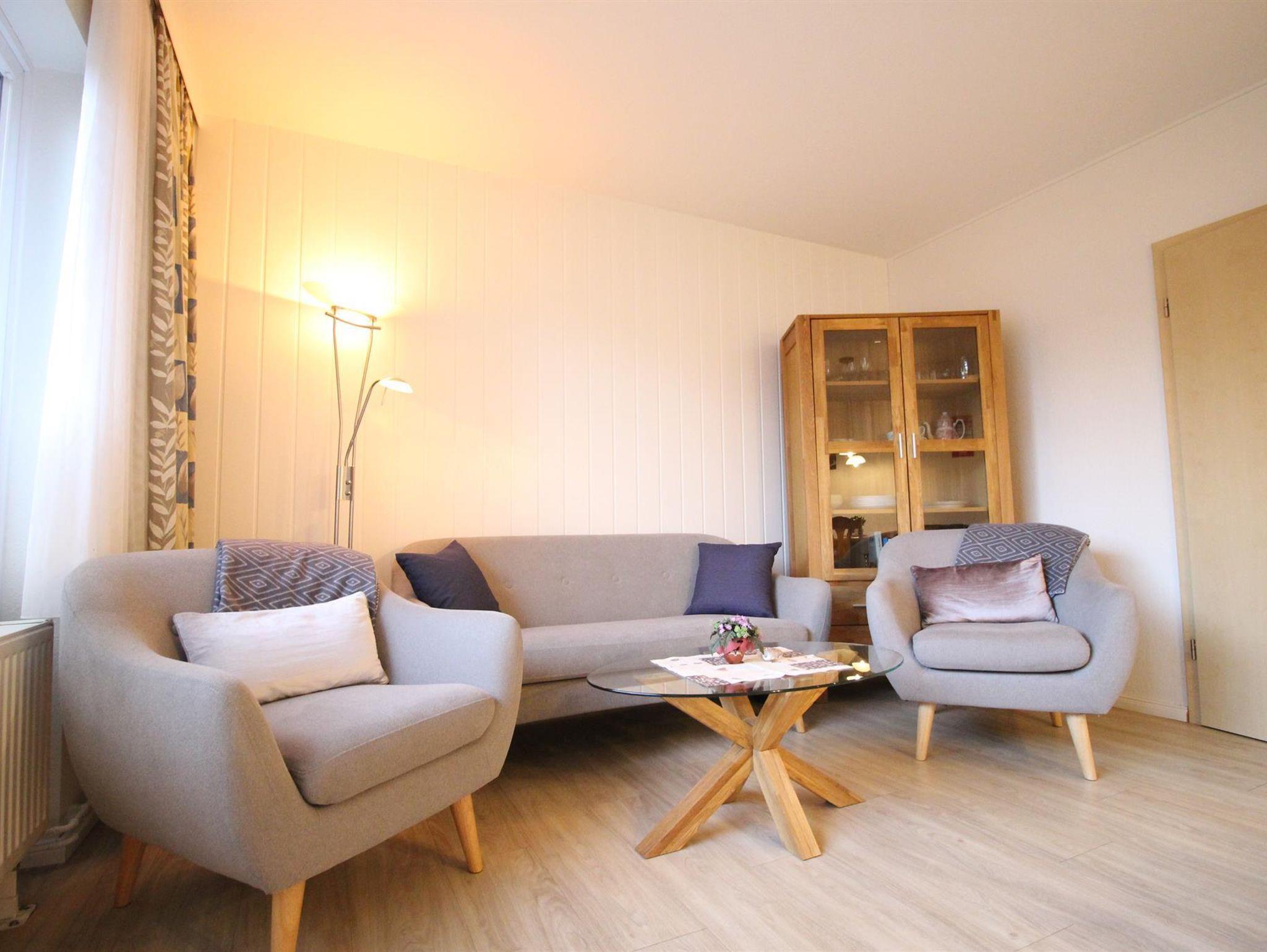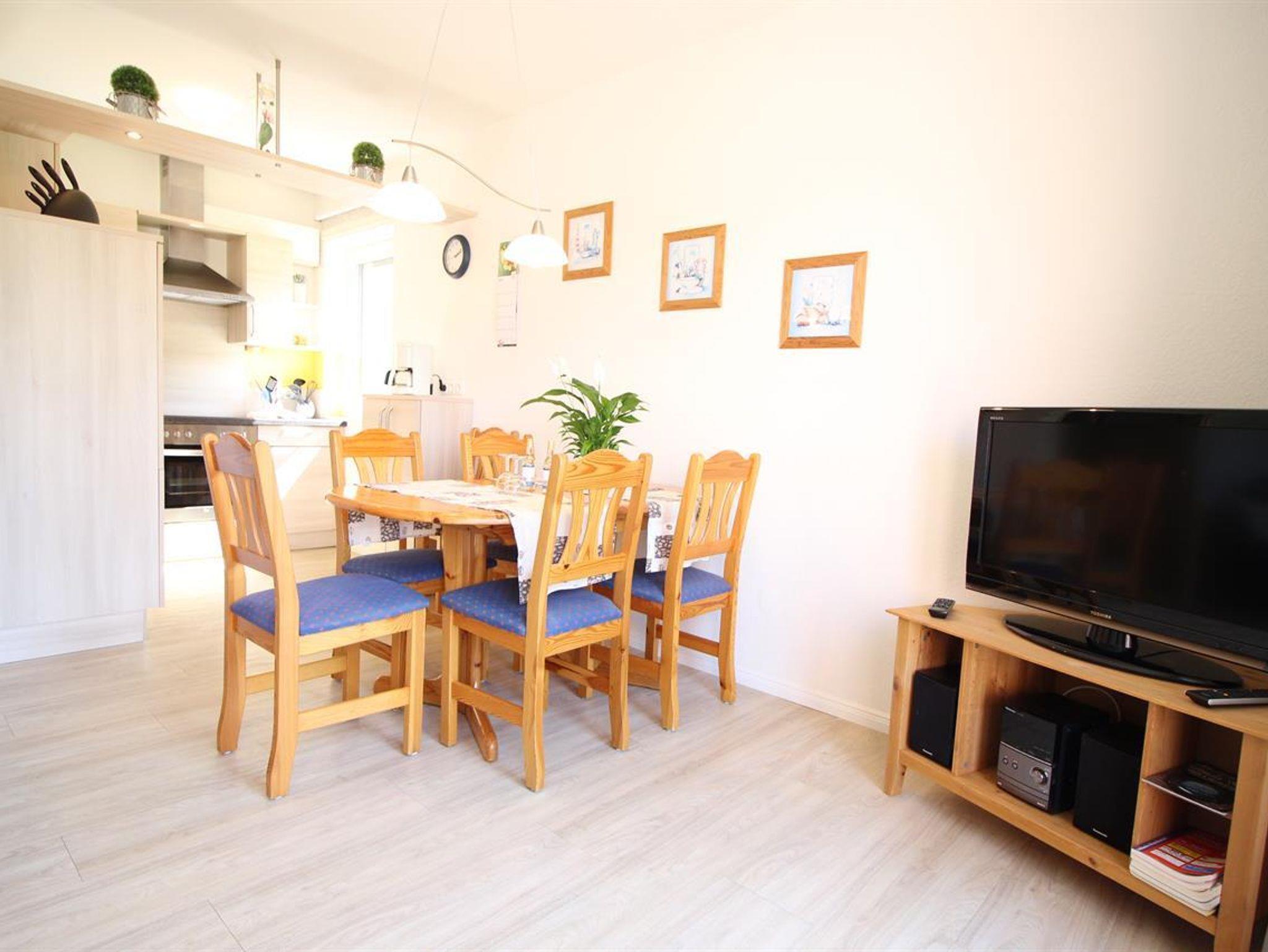 Im Wohnraum befindet sich eine gemütliche Sitzgruppe, ein Flahbildschirm mit SAT-Anlage und Stereo-Anlage.